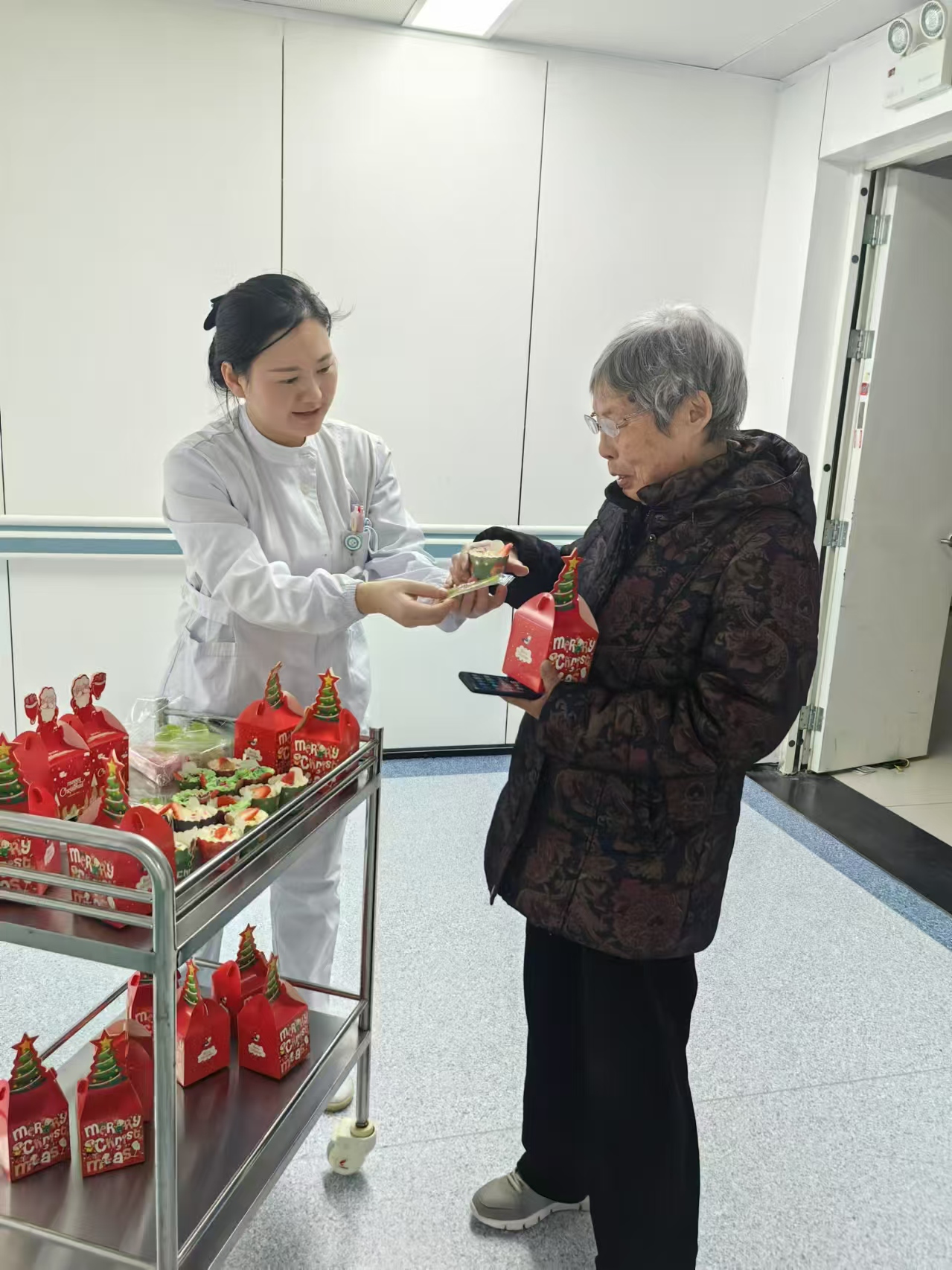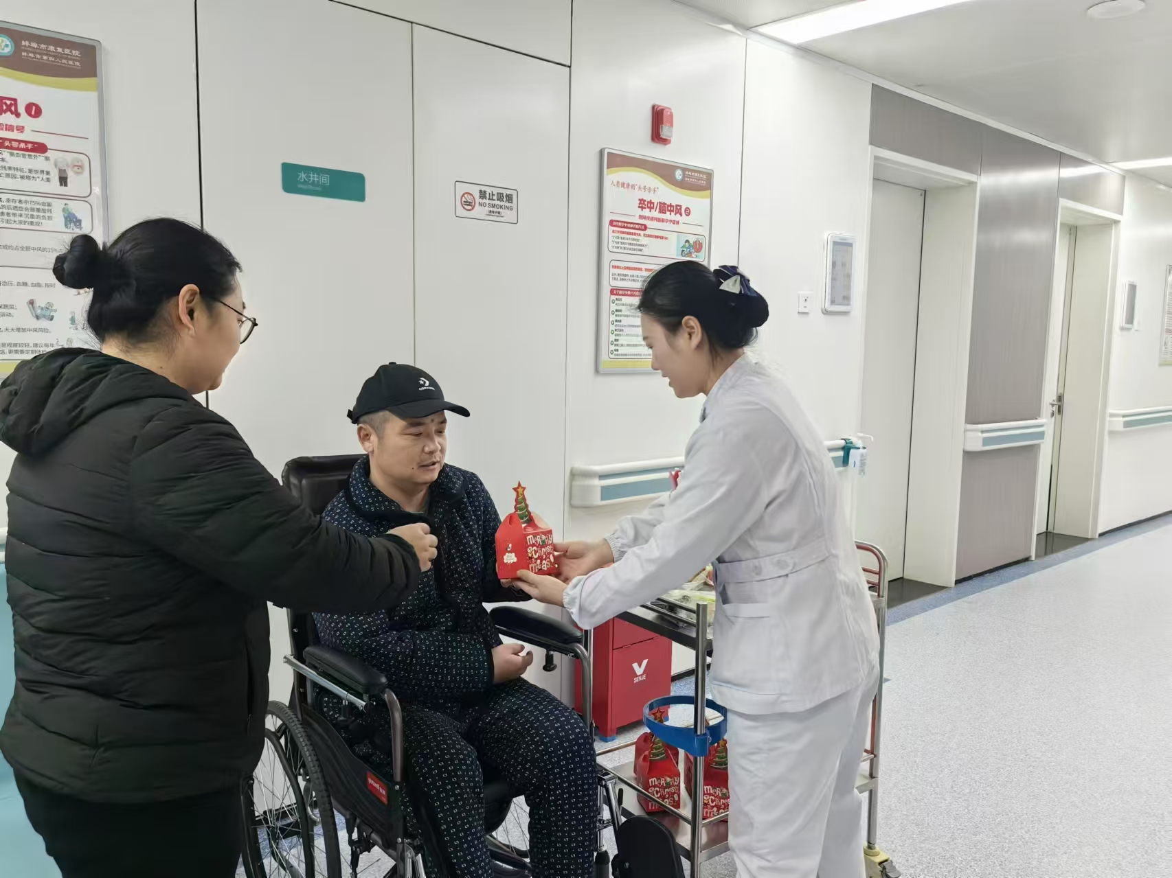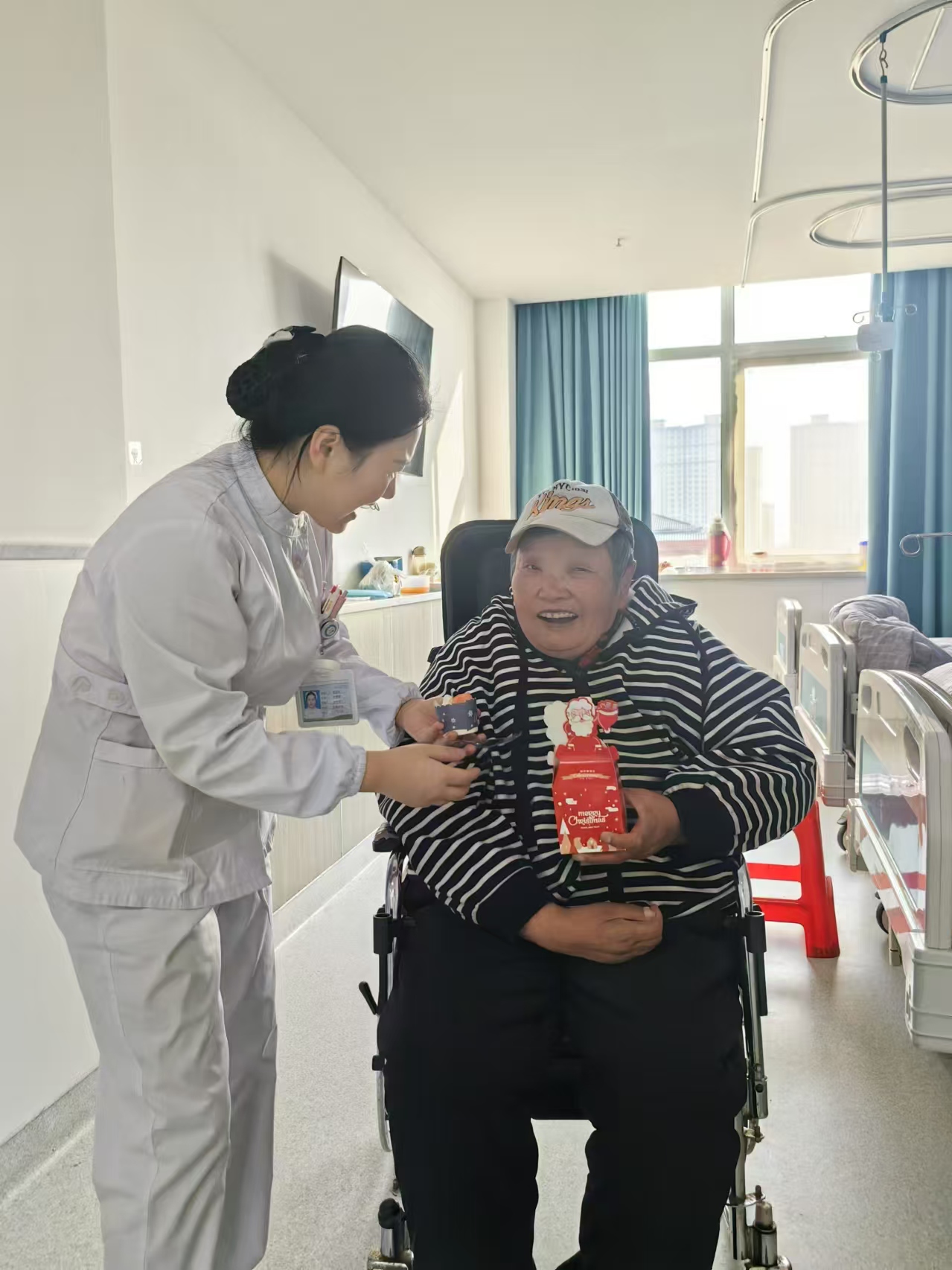 医护人员在病床前仔细询问患者的病情,同时送上节日的祝福,为他们带去平安与健康,让患者在寒冷的冬日里感受到浓浓的暖意,仿佛置身于温暖欢乐的家中。