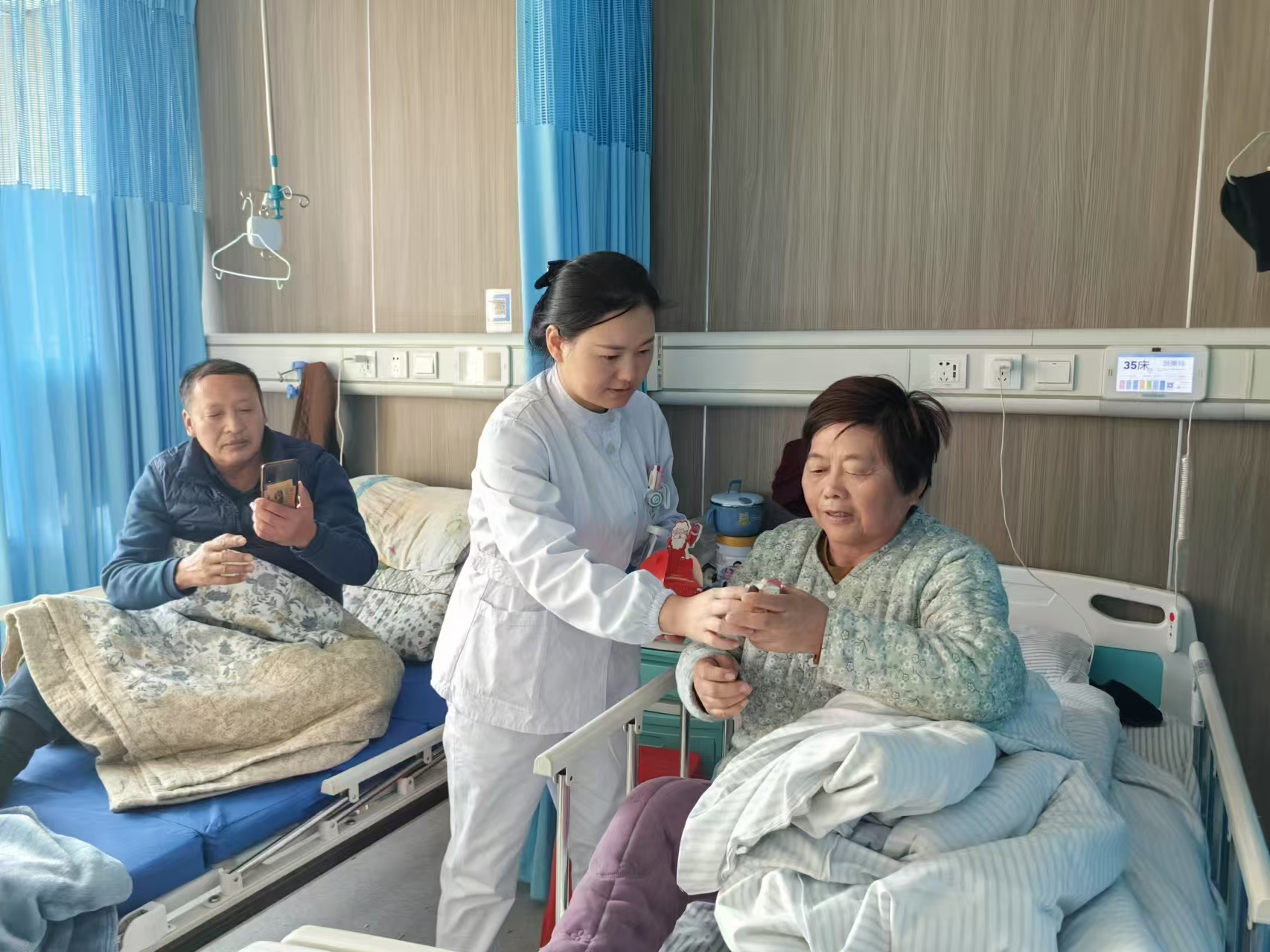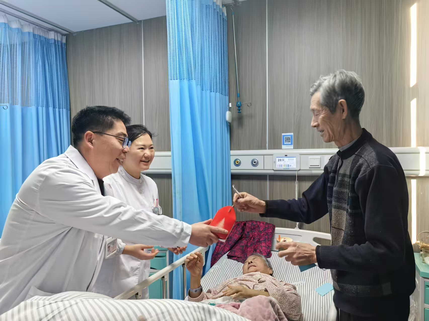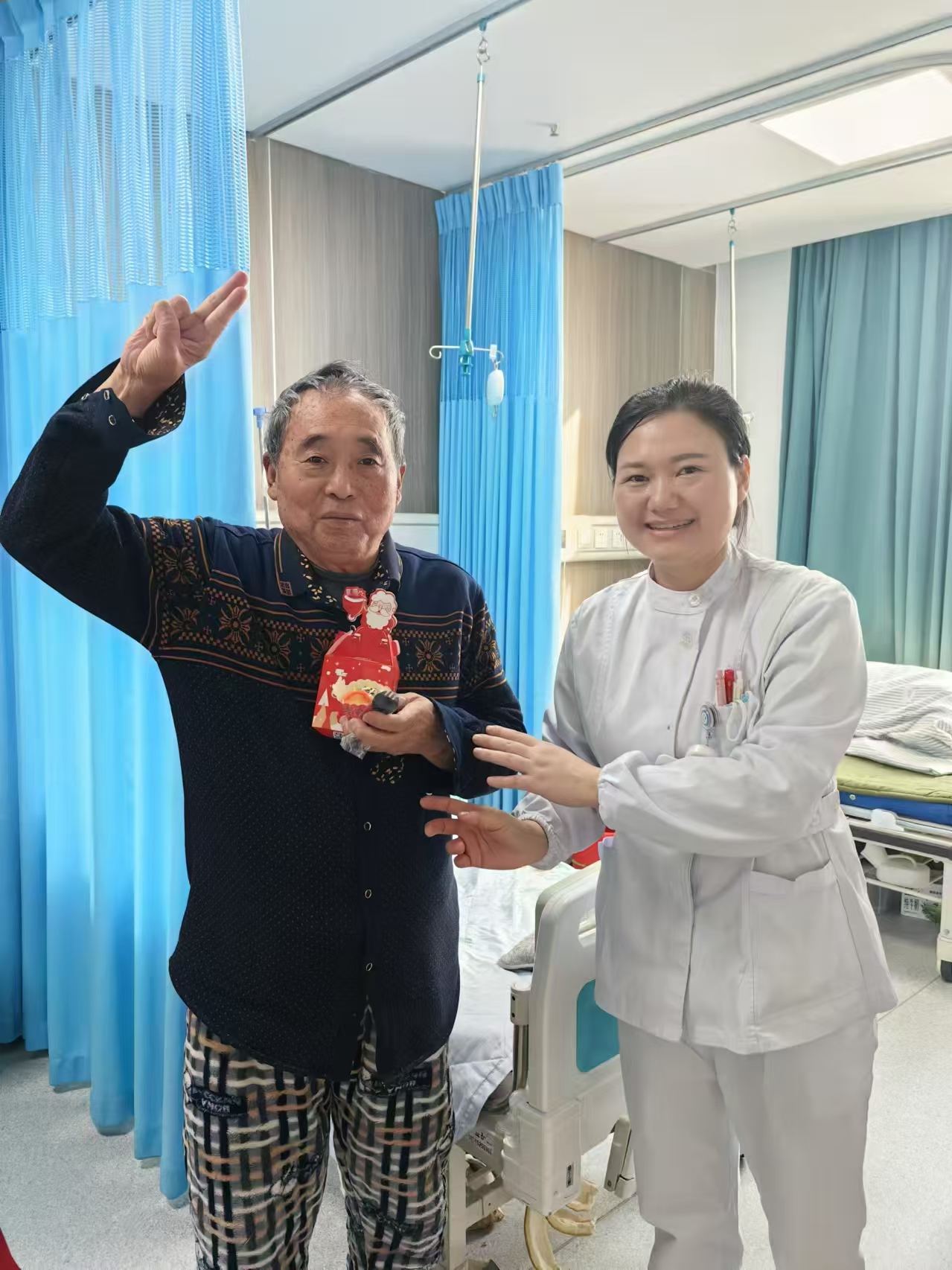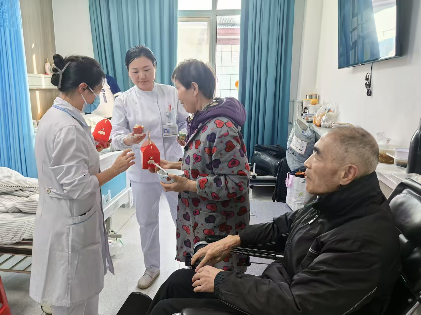 医护人员在病床前仔细询问患者的病情,同时送上节日的祝福,为他们带去平安与健康,让患者在寒冷的冬日里感受到浓浓的暖意,仿佛置身于温暖欢乐的家中。