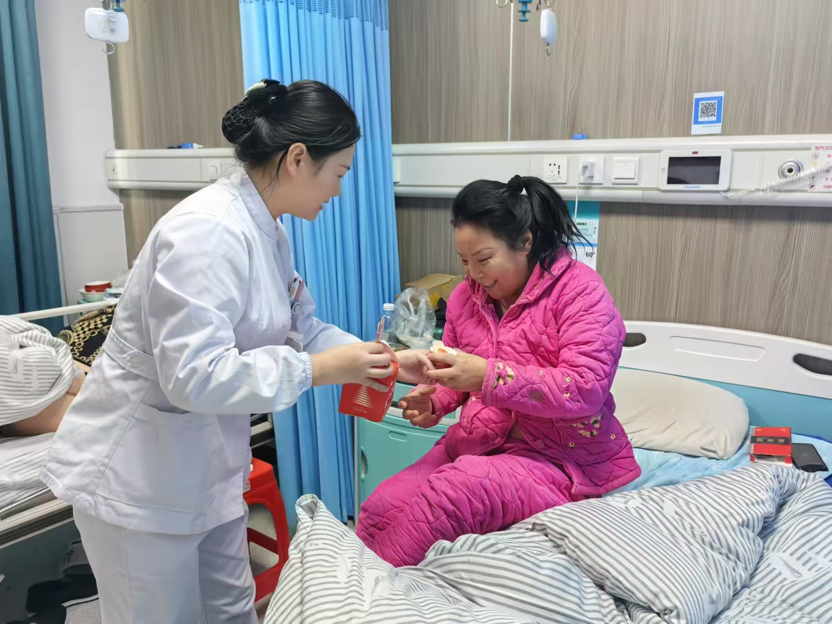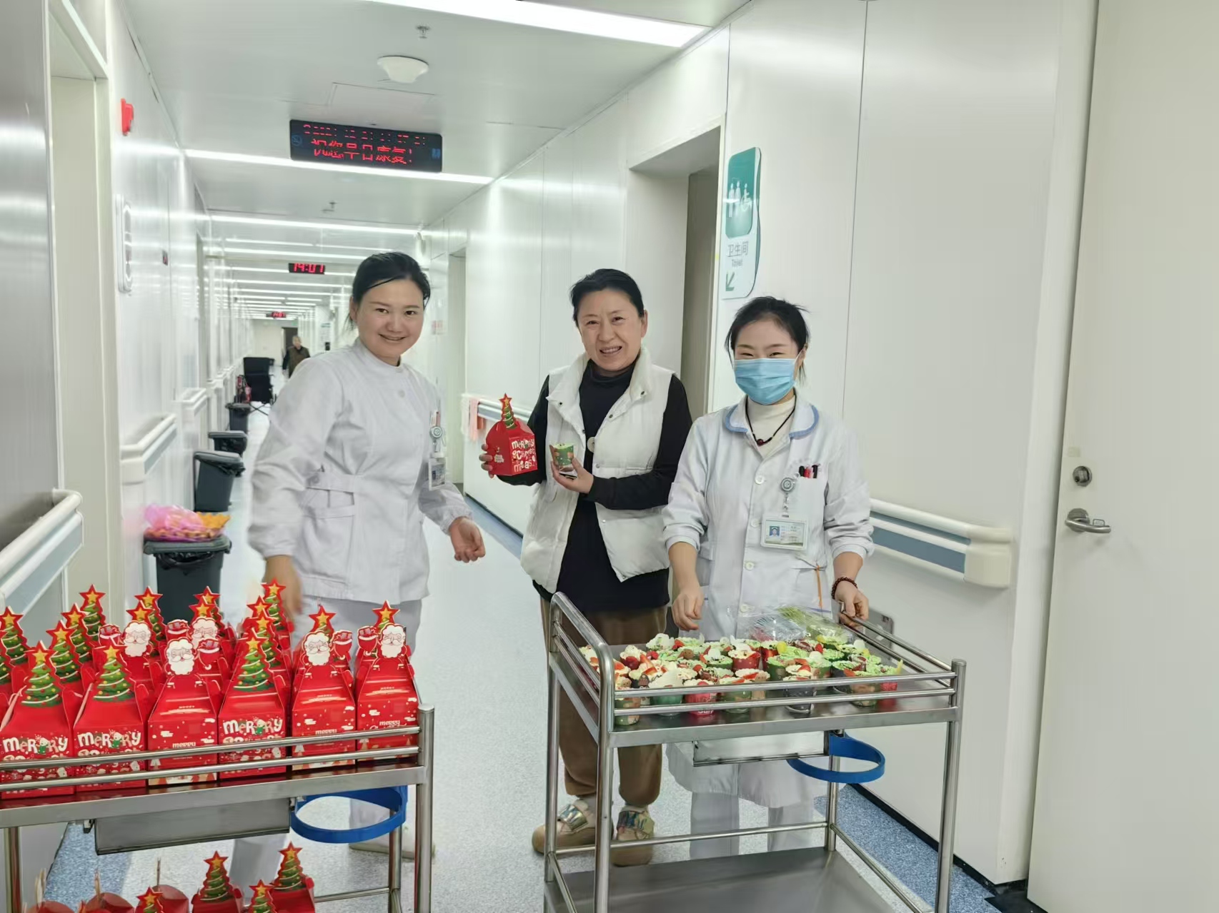 由于许多患者事先并不知情,当在这个充满希望与新生的元旦佳节来临之际,收到来自医院的苹果、蛋糕和节日祝福时,他们深感惊喜和感动,一张张脸上洋溢着笑容,病房里的节日氛围欢乐而温馨。患者们纷纷感慨:“没想到医院在元旦还这么用心,如此温馨,充满了人情味!”“谢谢你们,你们工作这么忙,还惦记着给我们送元旦礼物,太辛苦了!”“收到这些真是意外之喜,医院对患者的关怀细致入微啊!”