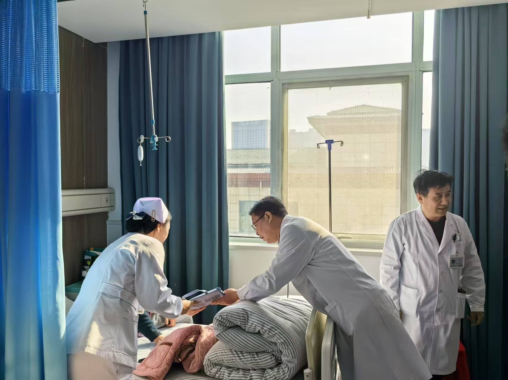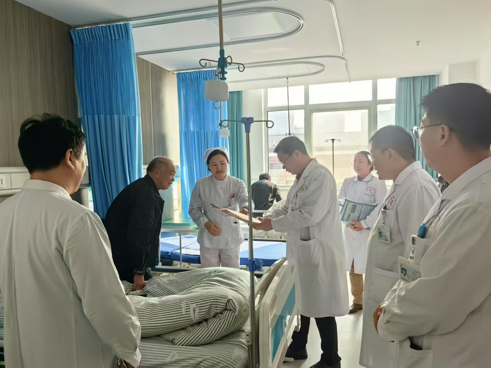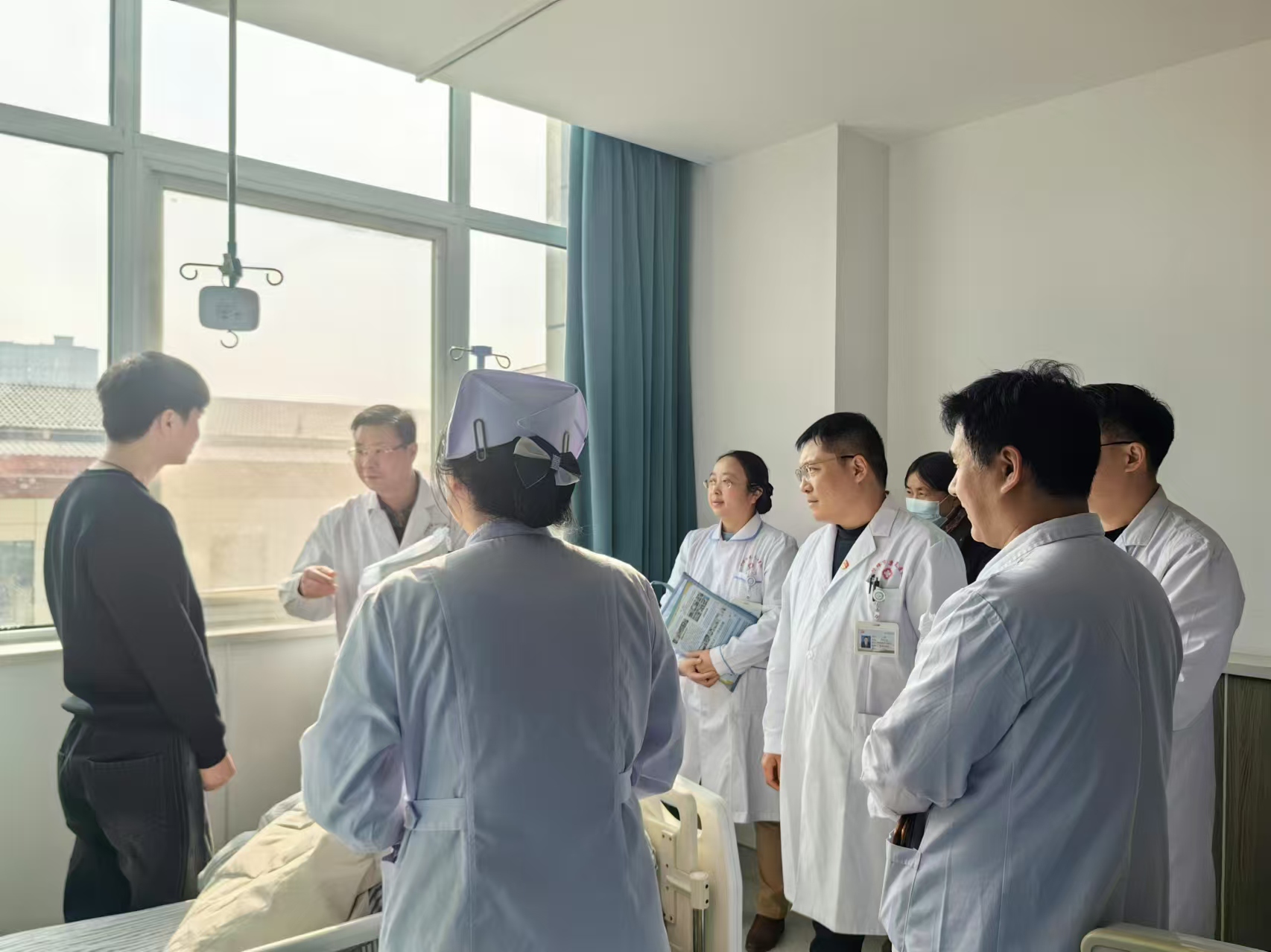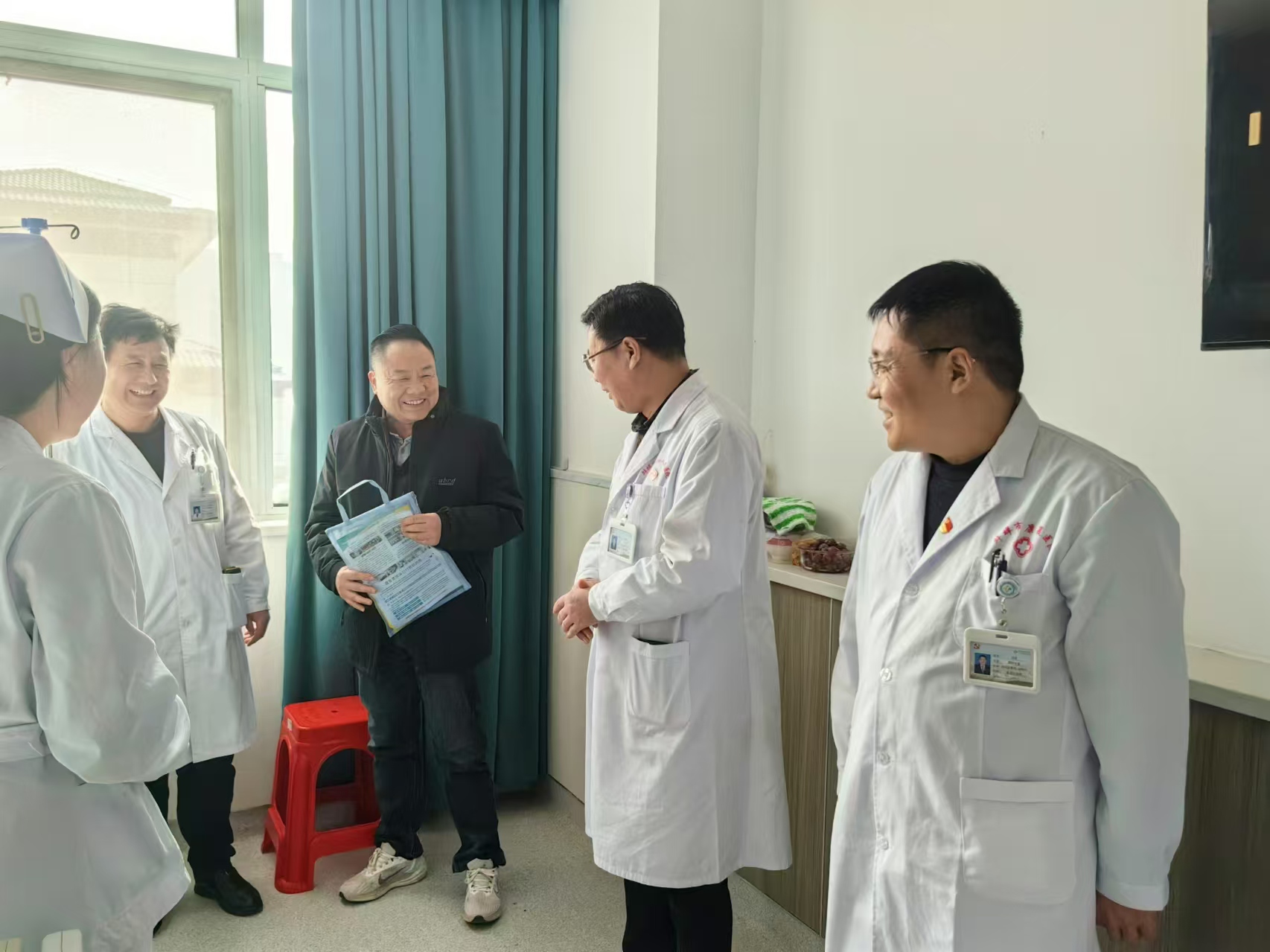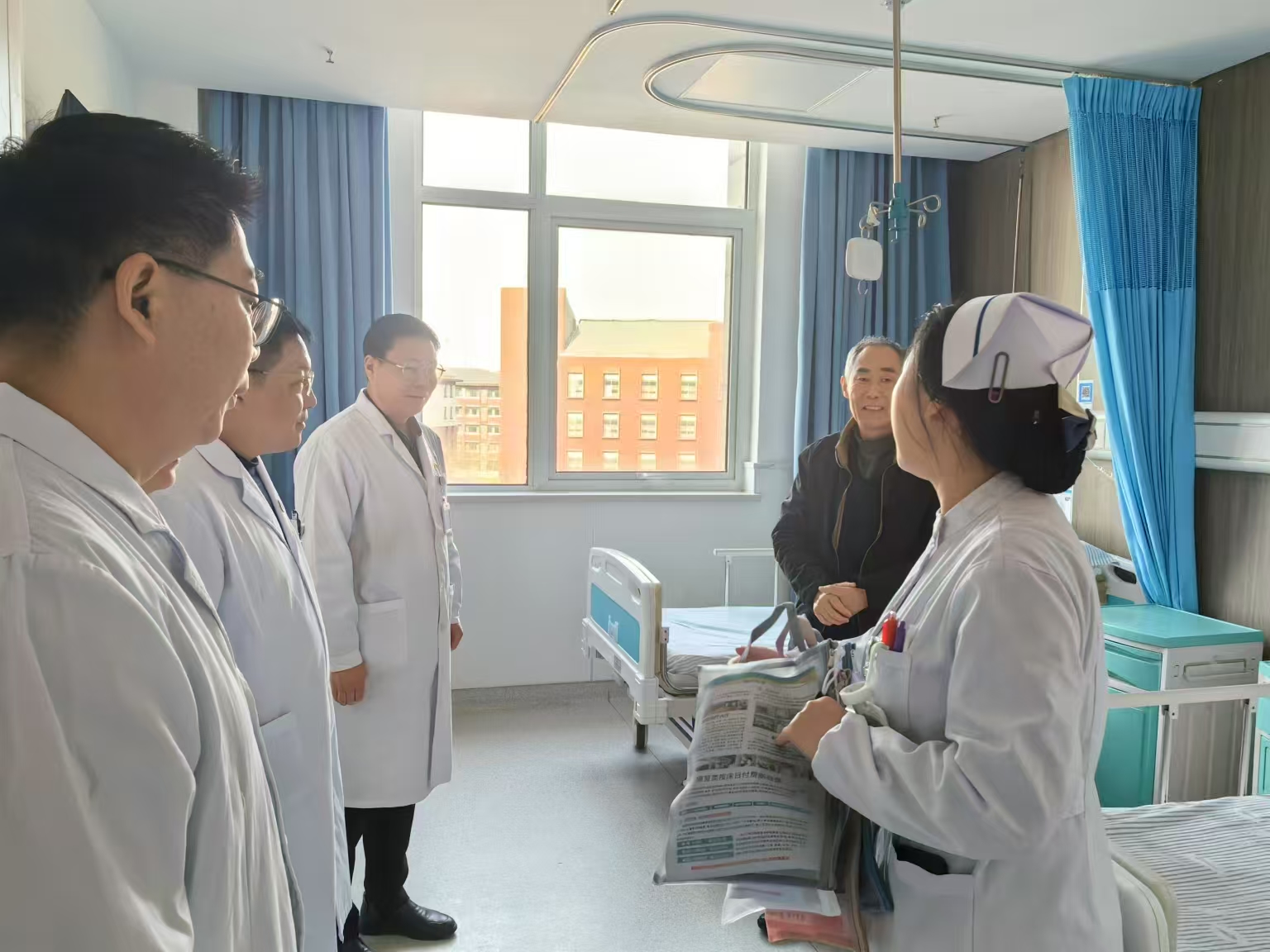 在本次探访活动中,院领导们率先来到了中医康复科病区,随即与新入院患者进行面对面交流。患者的床边成为了领导们关注的焦点,他们纷纷俯身询问患者的住院感受,事无巨细,从饭菜是否合口味、病房温度是否舒适,一路问到对诊疗流程的熟悉与理解状况等诸多方面。