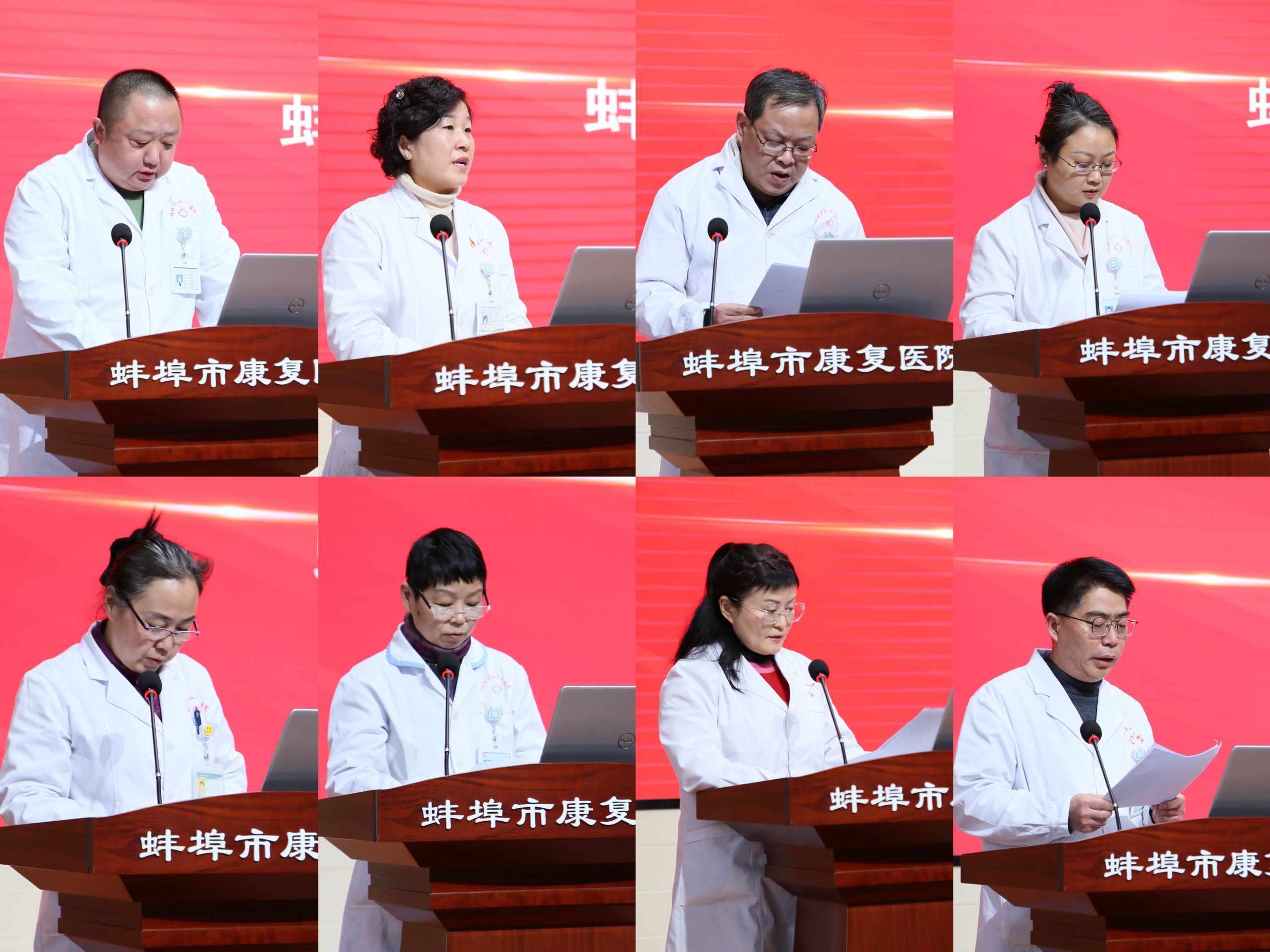 2025年1月9日、10日,蚌埠市第四人民医院(市康复医院)举行2024年度全院中层干部、科室负责人、病区护理部负责人述职述廉会议,启动2024年度中层干部综合考核工作。党总支委员、副院长冯亮主持会议,党总支书记徐晖,党总支副书记/院长施彪、院领导班子成员、全院中层干部、科室负责人、病区护理部负责人和部分职工代表参加会议。
