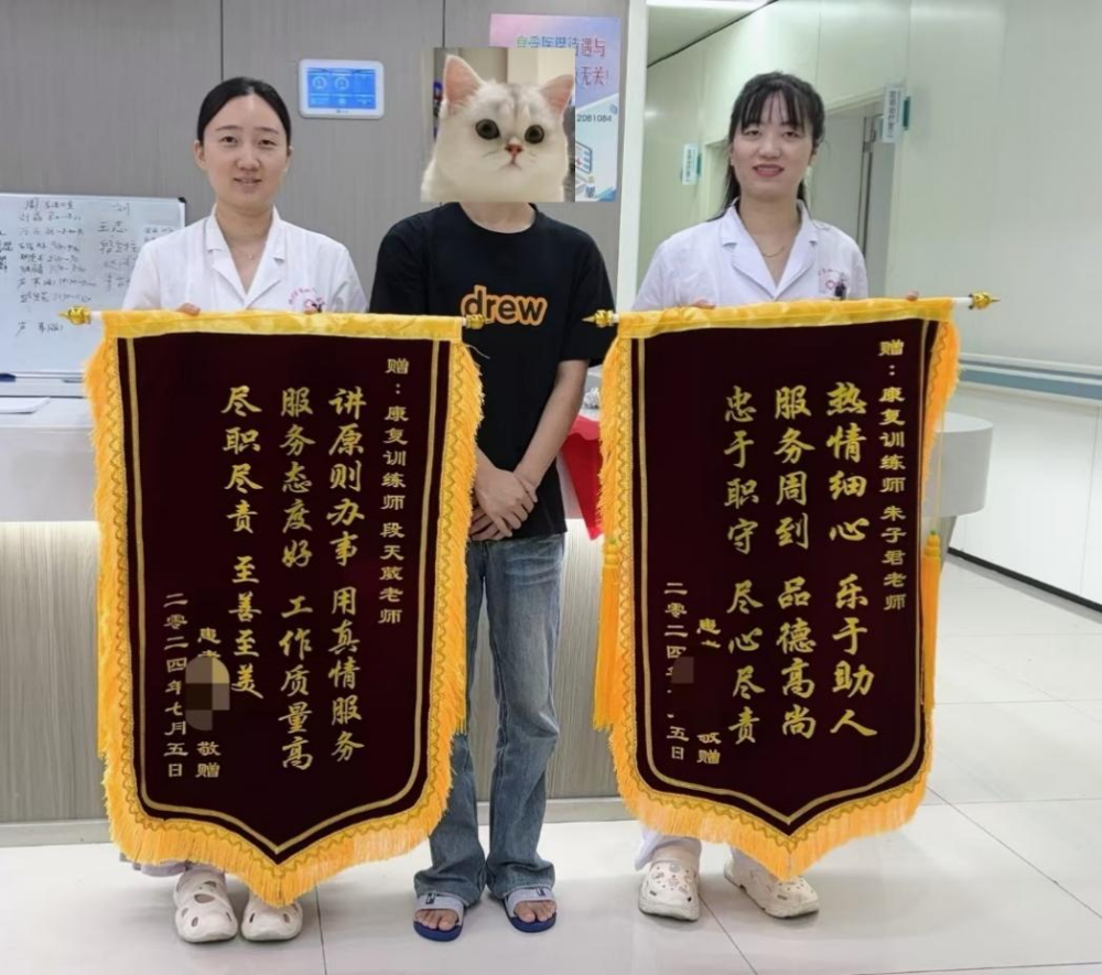 收到患者的表扬和锦旗已经成为了段天葳的工作日常。73岁的王爷爷因脊髓损伤和她结下深厚情谊,成了“忘年交”。平日里,他们一起读小说、讲笑话、打扑克。王爷爷曾说:“段老师说的每一句话我都相信!”68岁的彭大爷因为脑梗死在康复过程中也十分依赖她,他说:“没有段老师,我的手就没救了!”还有17岁的中学生马同学也对段天葳称赞有加:“段老师不仅帮助我恢复身体健康,还关照我的生活和心情。”这些来自患者的肯定,不仅是对段天葳专业能力的认可,更是对她耐心、细心和爱心的高度赞扬。