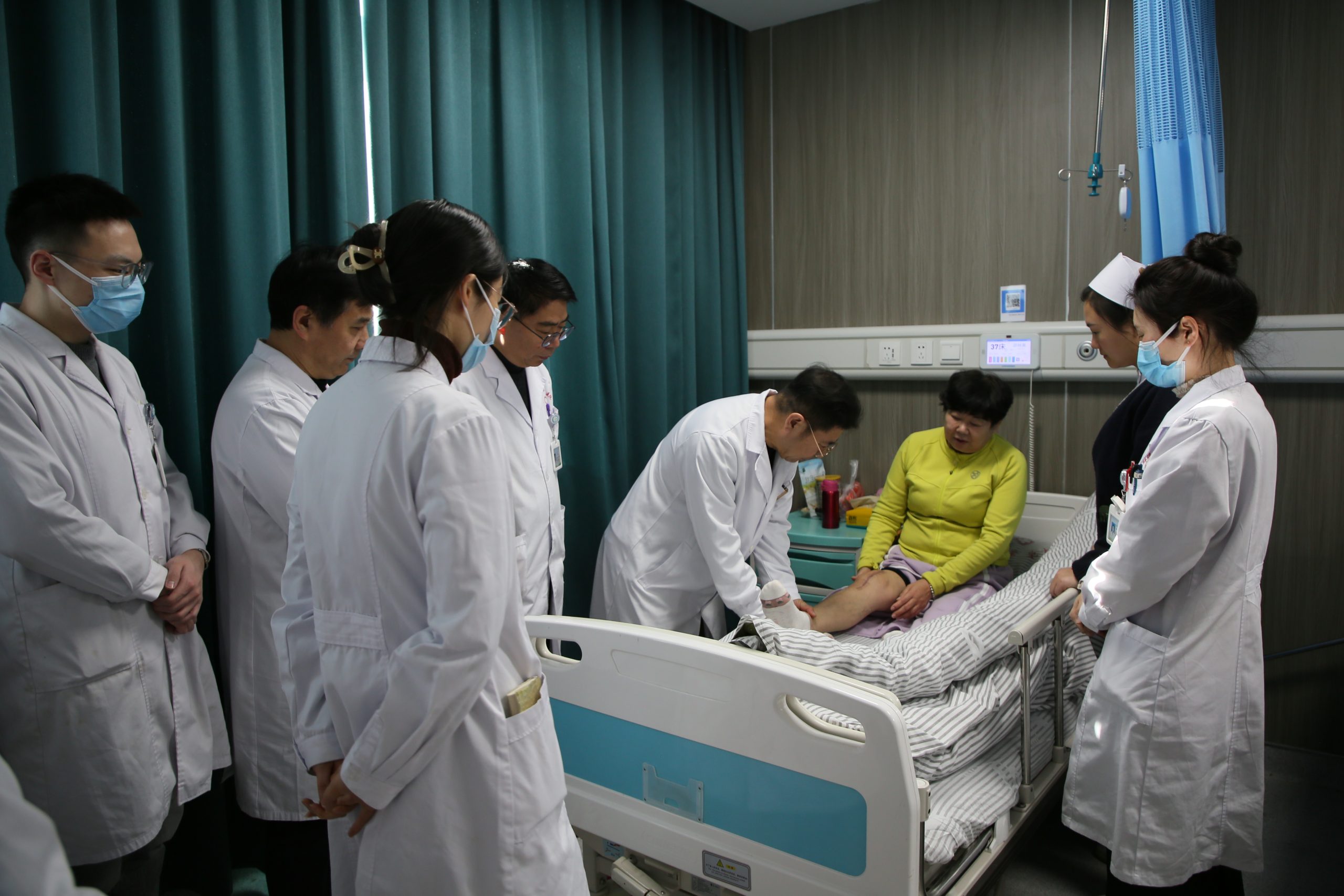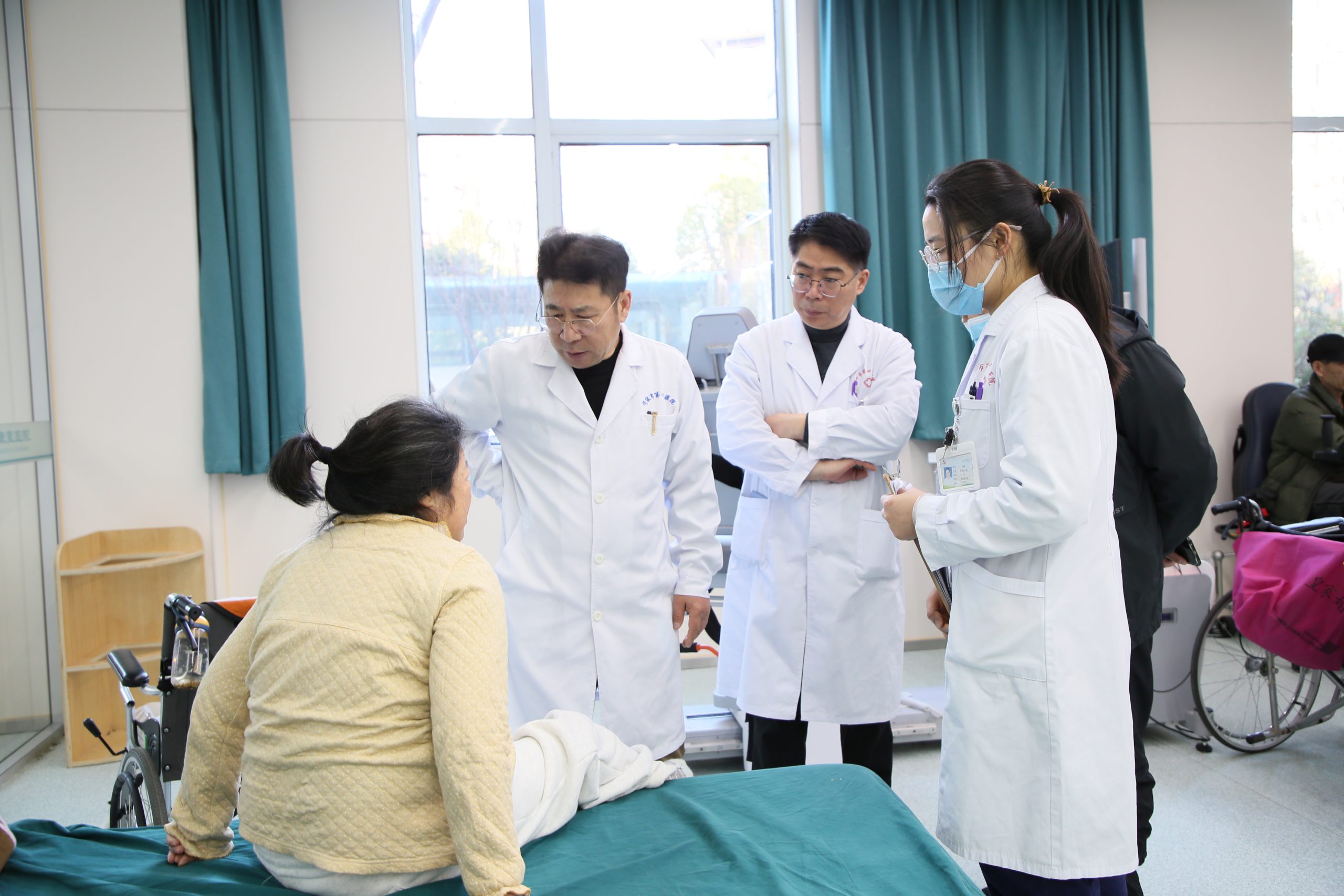 在结束专家门诊的工作后,郭旭教授马不停蹄地前往住院部各科病区,针对疑难病例展开查房工作。在了解患者病情后,郭旭教授为患者的治疗提供了新建议、新思路。随后,郭旭教授又带领康复治疗师、部分医生、护士就上午查房的病例情况进行分析,加深理解。