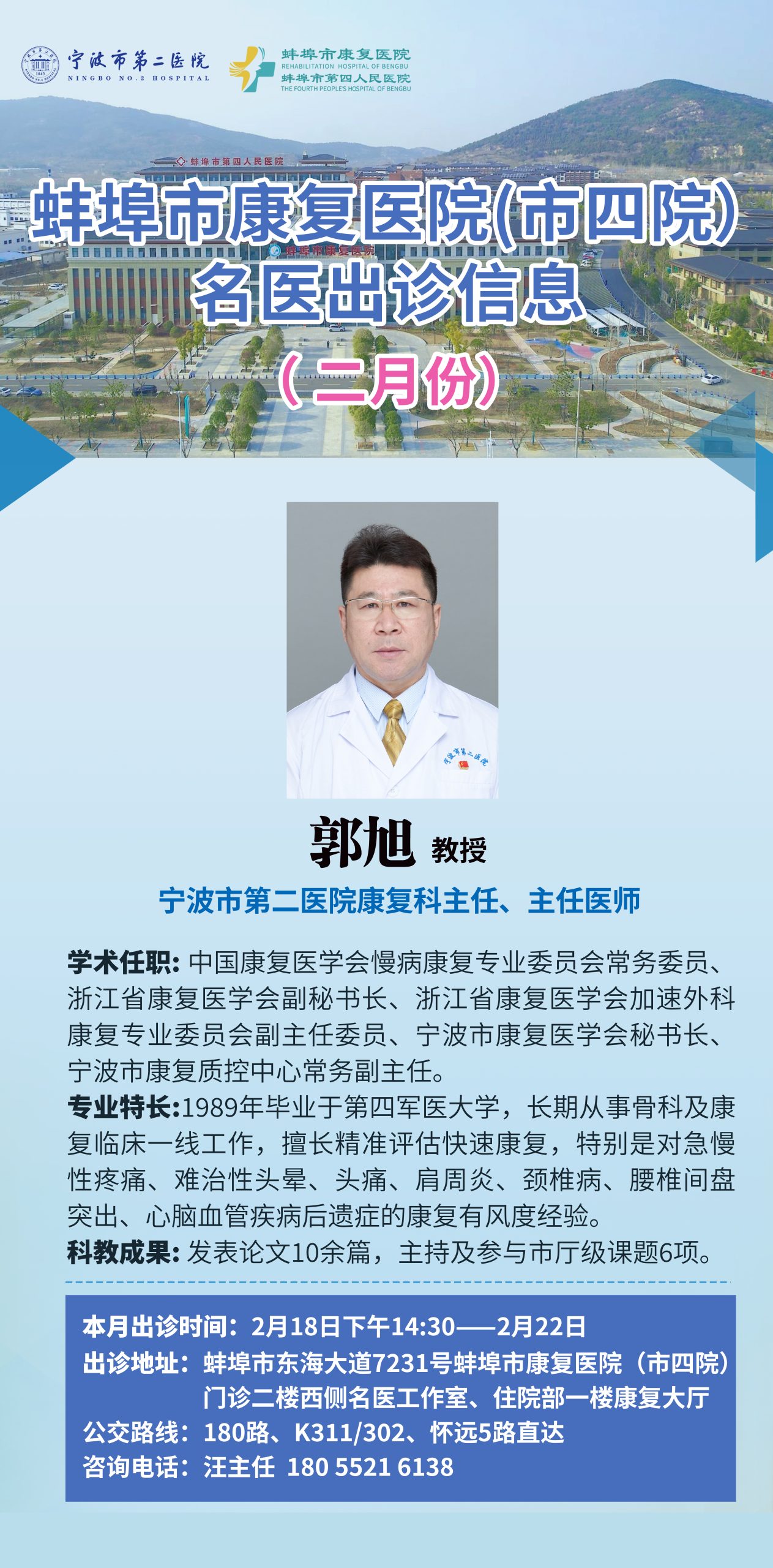 为进一步提升我院儿童康复治疗水平,给患儿提供更优质、专业的康复服务,我院邀请宁波第二医院康复科主任郭旭教授每月第二周来院进行康复指导。1月12日,郭旭教授来到我院儿童康复大厅,开展儿童康复指导工作。