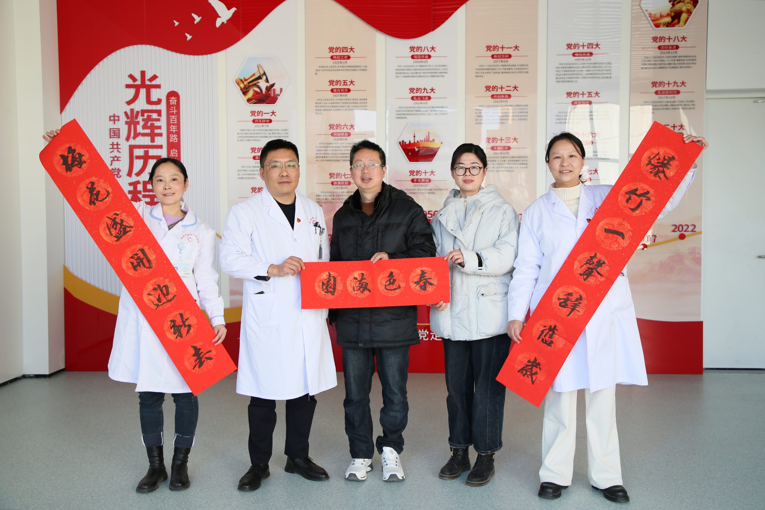 双拥共建迎新春,翰墨飘香送祝福。1月16日,在新春佳节即将来临之际,市军休一所主要负责人吴建明书记带队一行3人,来到蚌埠市第四人民医院(市康复医院)开展送春联活动并进行座谈交流。蚌埠市第四人民医院(市康复医院)副院长冯亮、党群工作部副主任汪玉、工会主任赵德好、中医康复科主任汪升均等医院代表参加了此次座谈。