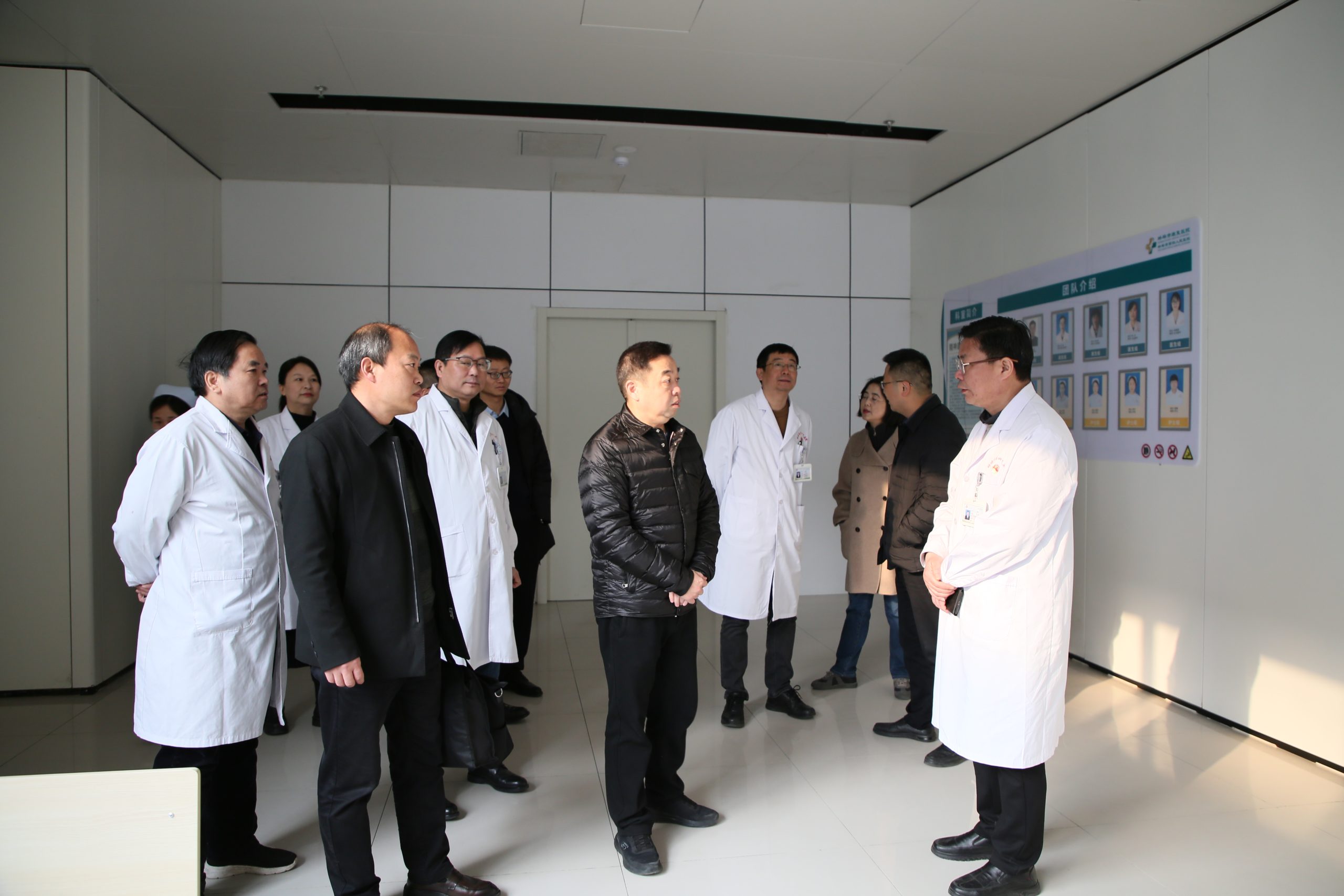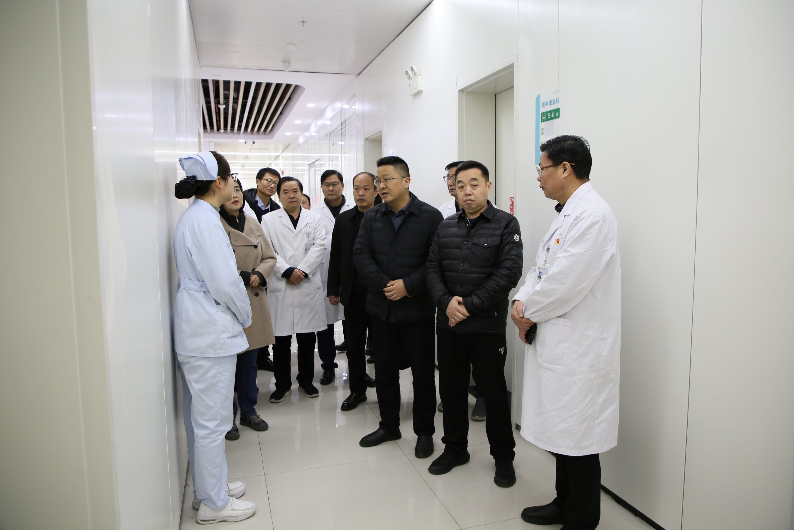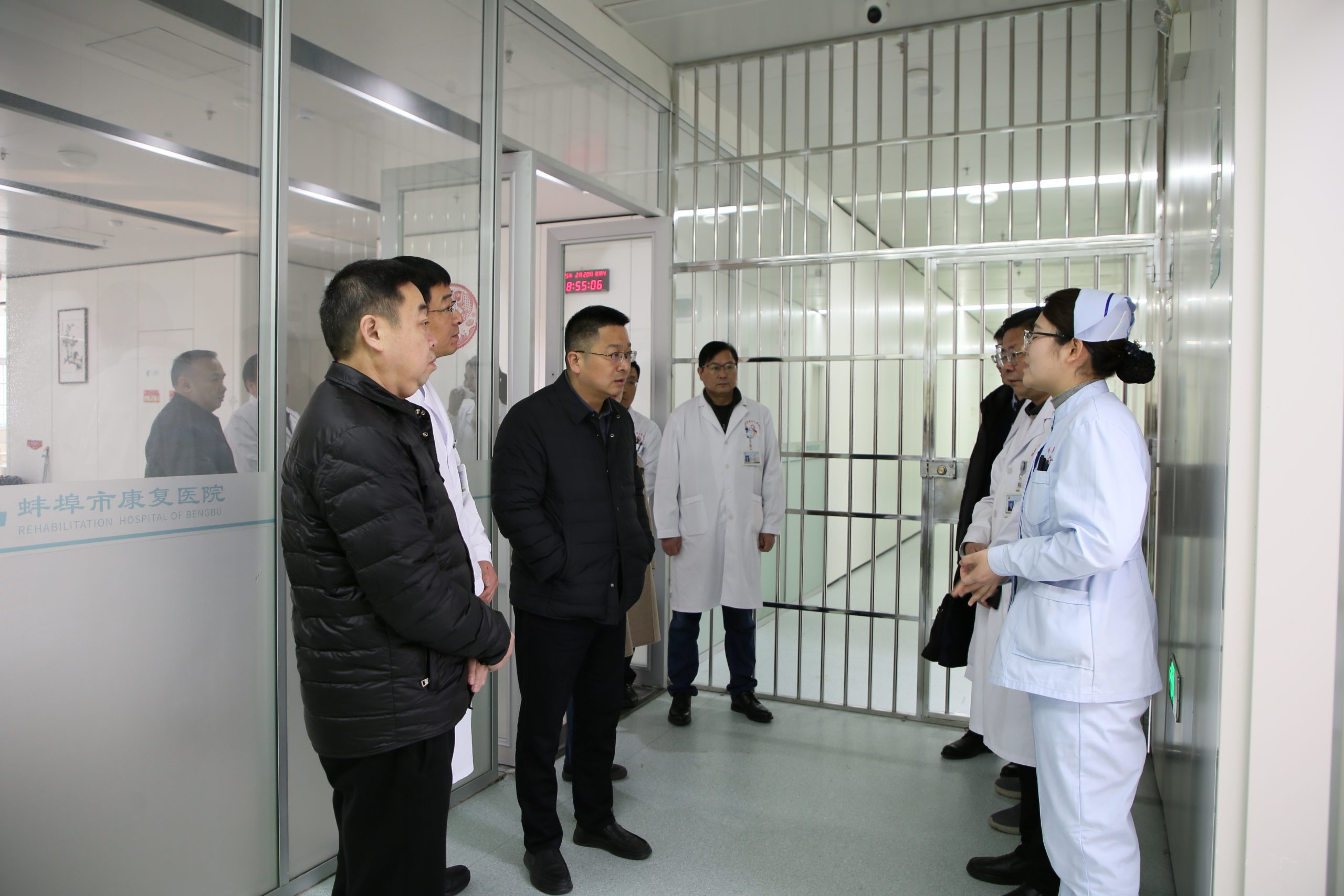 为加快推进我市精神卫生服务体系建设,切实提升精神专科医疗服务能力,2月20日,蚌埠市医保局党组书记魏宏伟,蚌埠市卫健委党委书记、主任李剑,副主任黄莺带队赴蚌埠市第四人民医院(市康复医院)开展精神专科建设专项调研。蚌埠市第四人民医院(市康复医院)党总支书记徐晖及班子成员陪同调研。