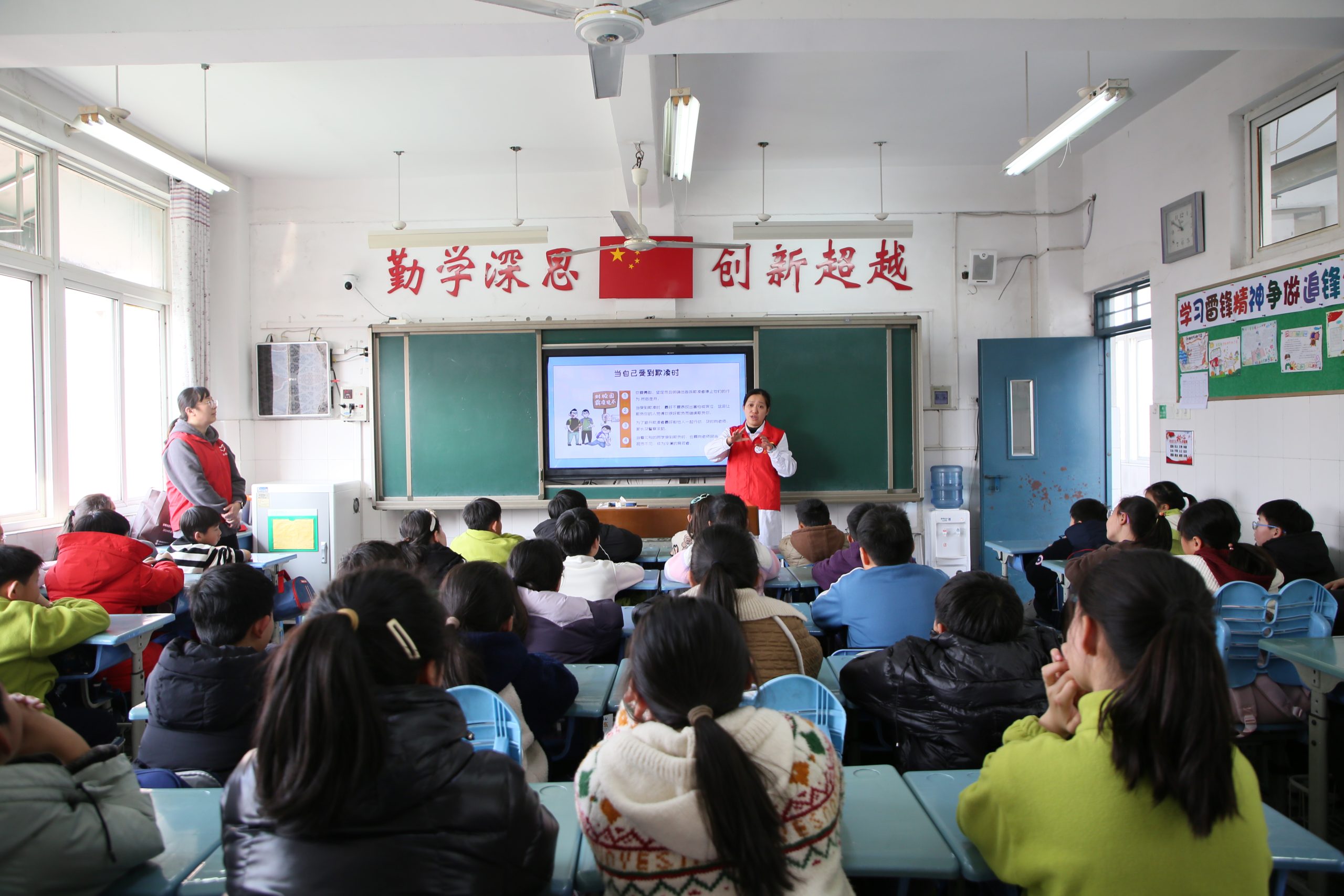 校园欺凌作为当下社会高度关注的热点问题,严重威胁着学生的身心健康和全面发展。为了营造一个安全、和谐的校园环境,提高学生的法律意识和自我保护能力,在3月5日“中国青年志愿者服务日”来临之际,蚌埠市第四人民医院(市康复医院)徐香志愿者服务站积极响应社会需求,走进师范附小4(5)班,开展了一场以“杜绝校园欺凌,共建和谐校园”为主题的宣教活动。