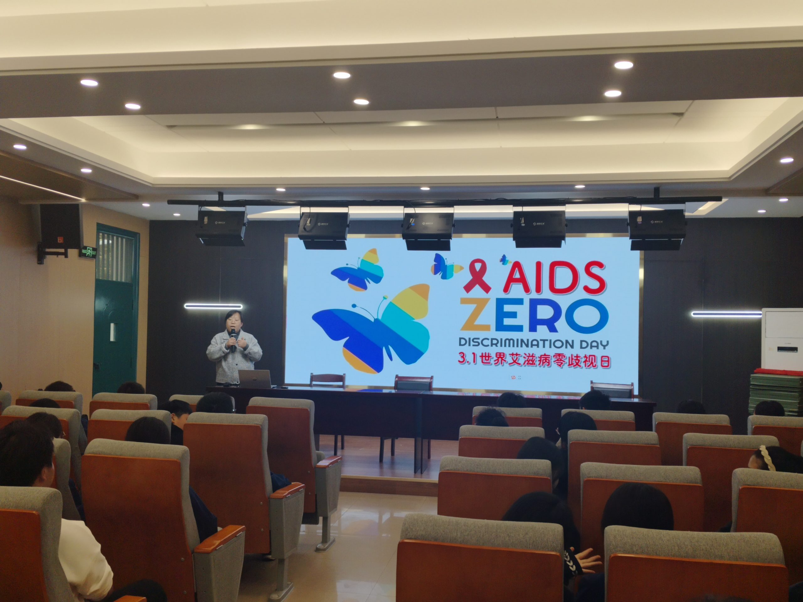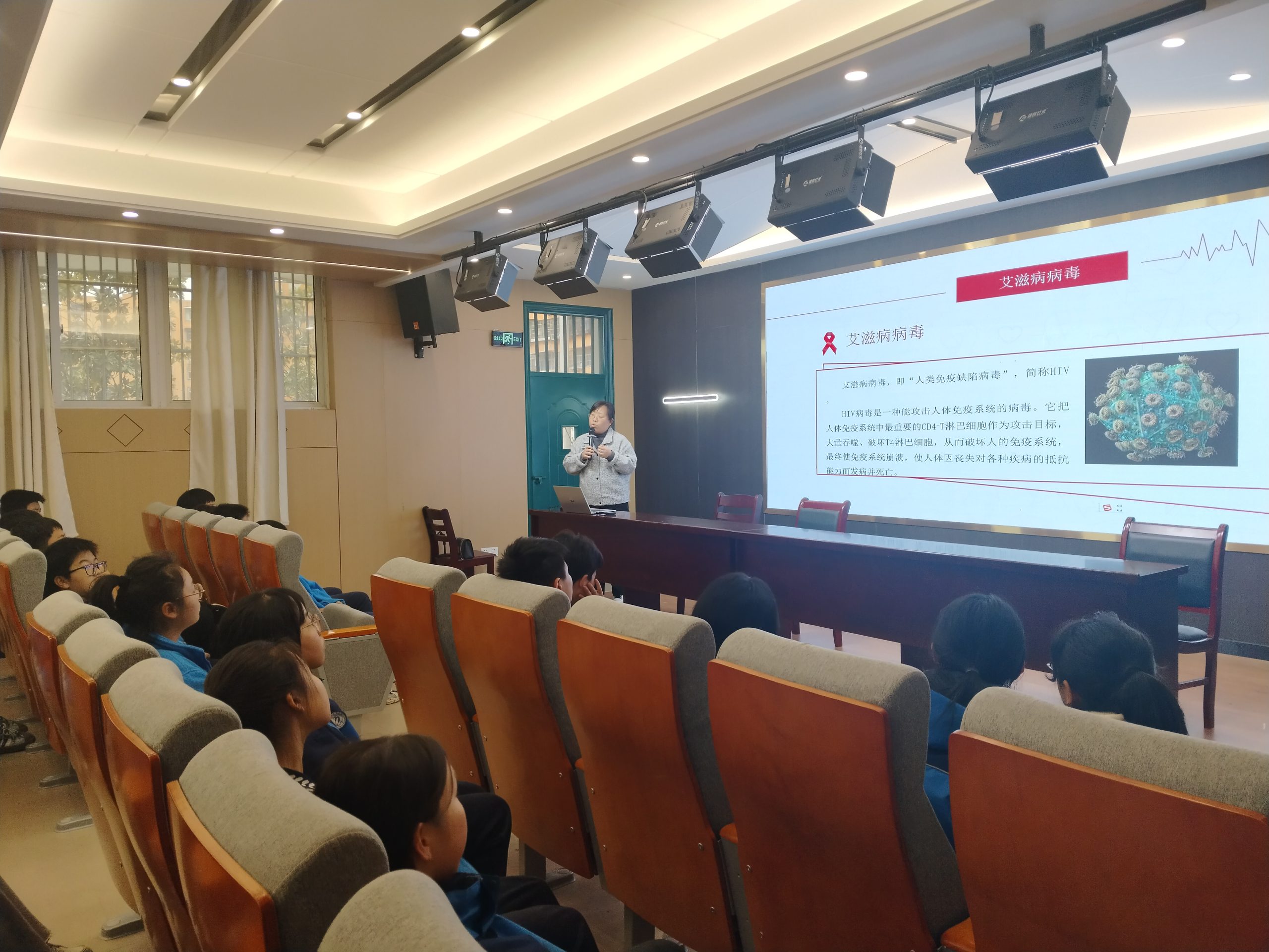 妇科副主任医师赵欣以“社会共治、终结艾滋、共享健康”为主题,围绕艾滋病病毒(HIV)特性、传播途径、疾病发展进程及预防措施等核心内容展开系统讲解。通过案例分析、数据对比等形式,重点解读“青少年高危行为防范”“暴露后应急处置”等实用知识,引导学生树立正确健康观,倡导学生养成远离毒品、洁身自好的生活方式,并着重强调“早检测、早发现、早治疗”的防治原则。