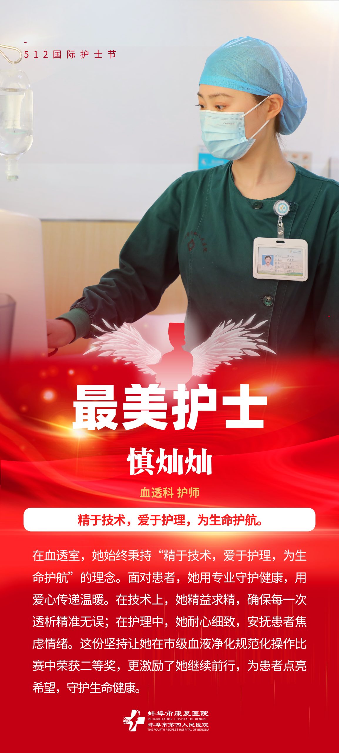 为隆重纪念2025年5・12国际护士节,深入弘扬”敬佑生命、救死扶伤、甘于奉献、大爱无疆”的崇高职业精神,全面展现护理工作者的卓越风采,在护士节到来前夕,我院”最美护士”评选活动圆满收官。经严格评审,十位护理工作者凭借精湛的专业素养、优质的服务态度脱颖而出。面对繁重的护理工作,她们从不退缩,始终以饱满的热情用心呵护每一位患者,用实际行动诠释恪尽职守的职业担当,在平凡的岗位上绽放出绚烂光彩。现在,就让我们一同走近这些白衣天使,领略她们的动人风采。
