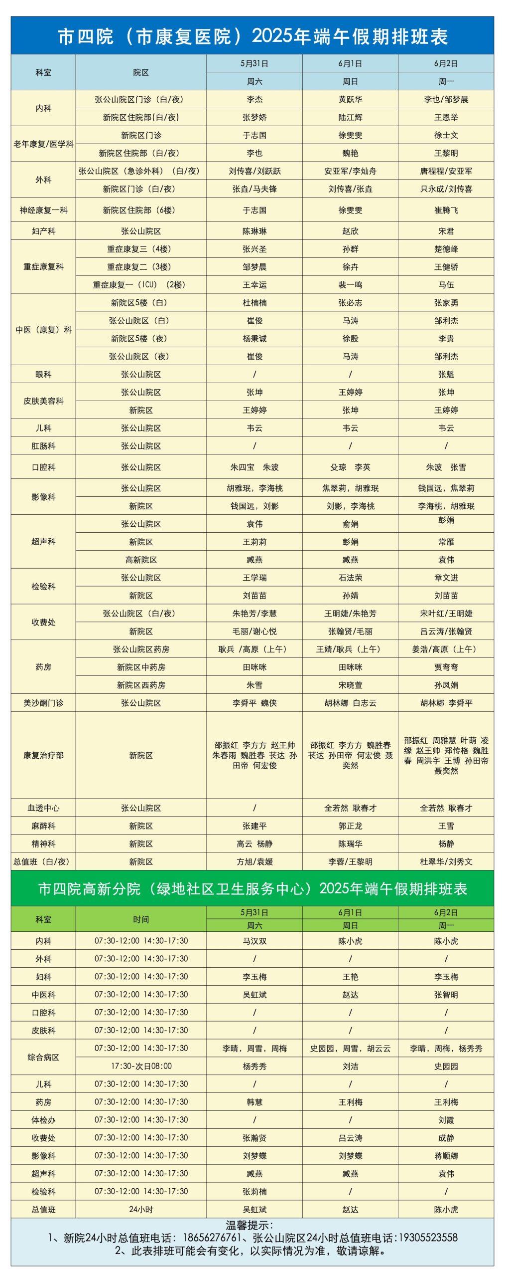 蚌埠市第四人民医院(市康复医院)2025年端午节假期期间(5月31日—6月2日)执行无假日门诊,各科室门诊、专家门诊正常应诊,药房、医技等窗口科室正常开放。医院开设急诊24小时绿色通道,急诊科正常排班。