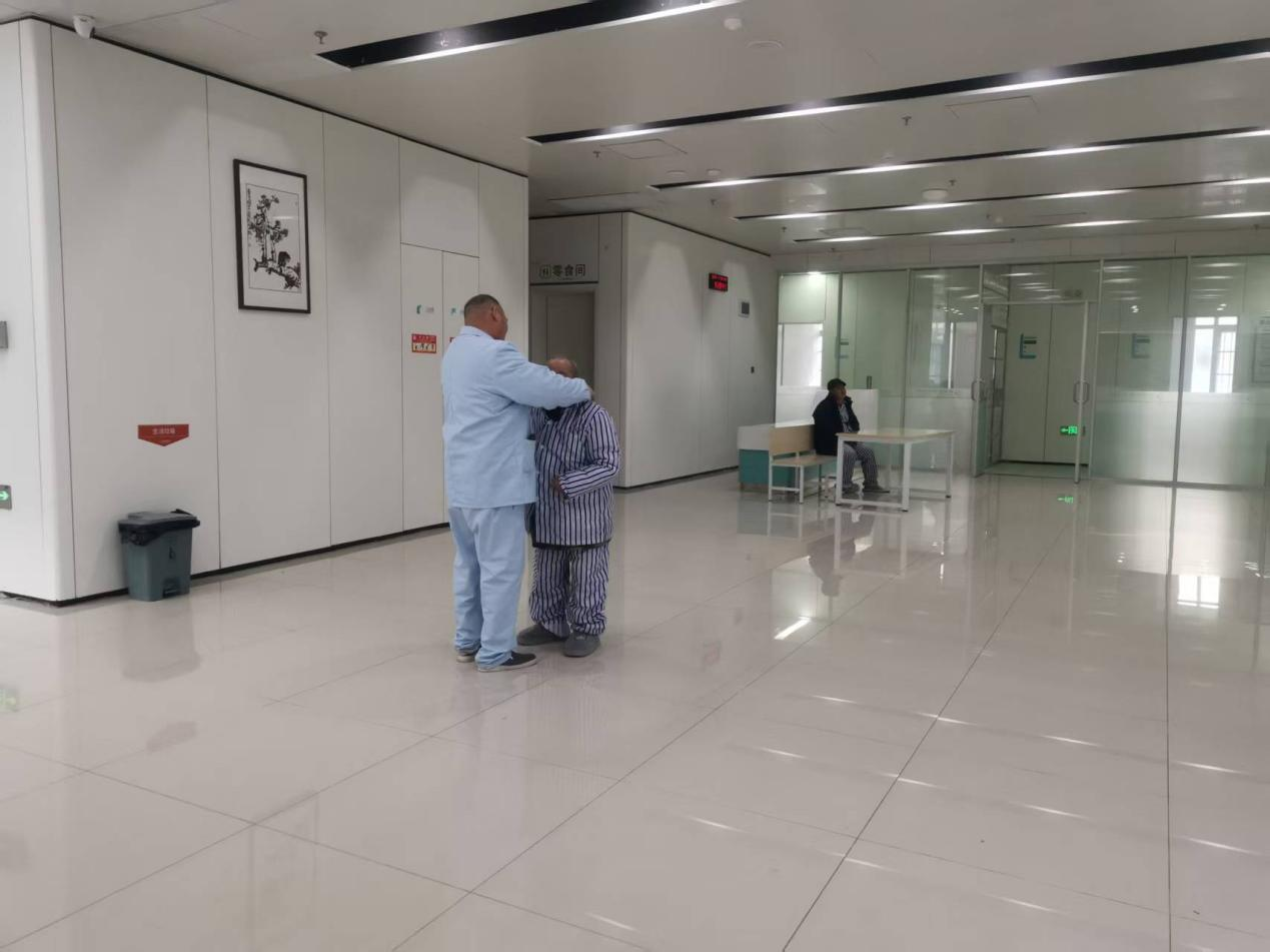 老人入住精神康复病区后,因病情时常不配合治疗。有一天,老人尿湿了裤子,医护人员上前帮忙,却被他又骂又泼。护工张师傅赶来,在当班护士协助下走向老人。可老人抵抗激烈,直接躺在地上不让人碰。张师傅没有退缩,他蹲下轻声安抚,和护士一起慢慢靠近。老人依旧挣扎,张师傅果断紧紧抱住他,和护士一起将老人往淋浴间挪。进入淋浴间,张师傅不顾衣物被淋湿,打开水龙头。温热的水洒下,老人渐渐安静。护士搬来椅子,张师傅扶老人坐下,拿起毛巾仔细地为他擦拭身体,边擦边询问感受。慢慢地,老人眼中的抗拒消失,乖乖配合清洗。