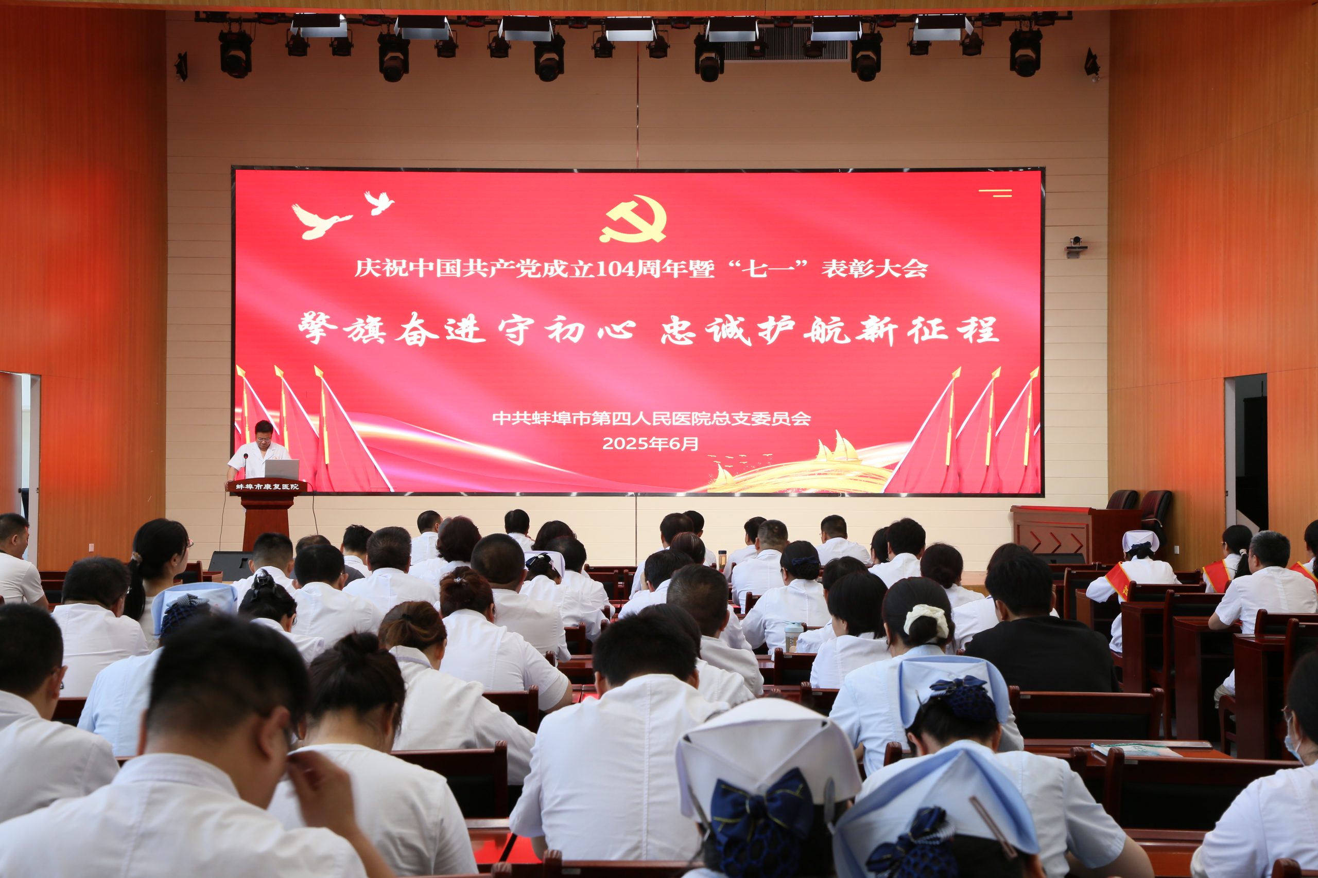 院党总支委员、副院长冯亮宣读《中共蚌埠市第四人民医院总支委员会关于表彰优秀共产党员、优秀党务工作者和先进基层党组织的决定》。在热烈的掌声中,院领导为受表彰对象颁奖。