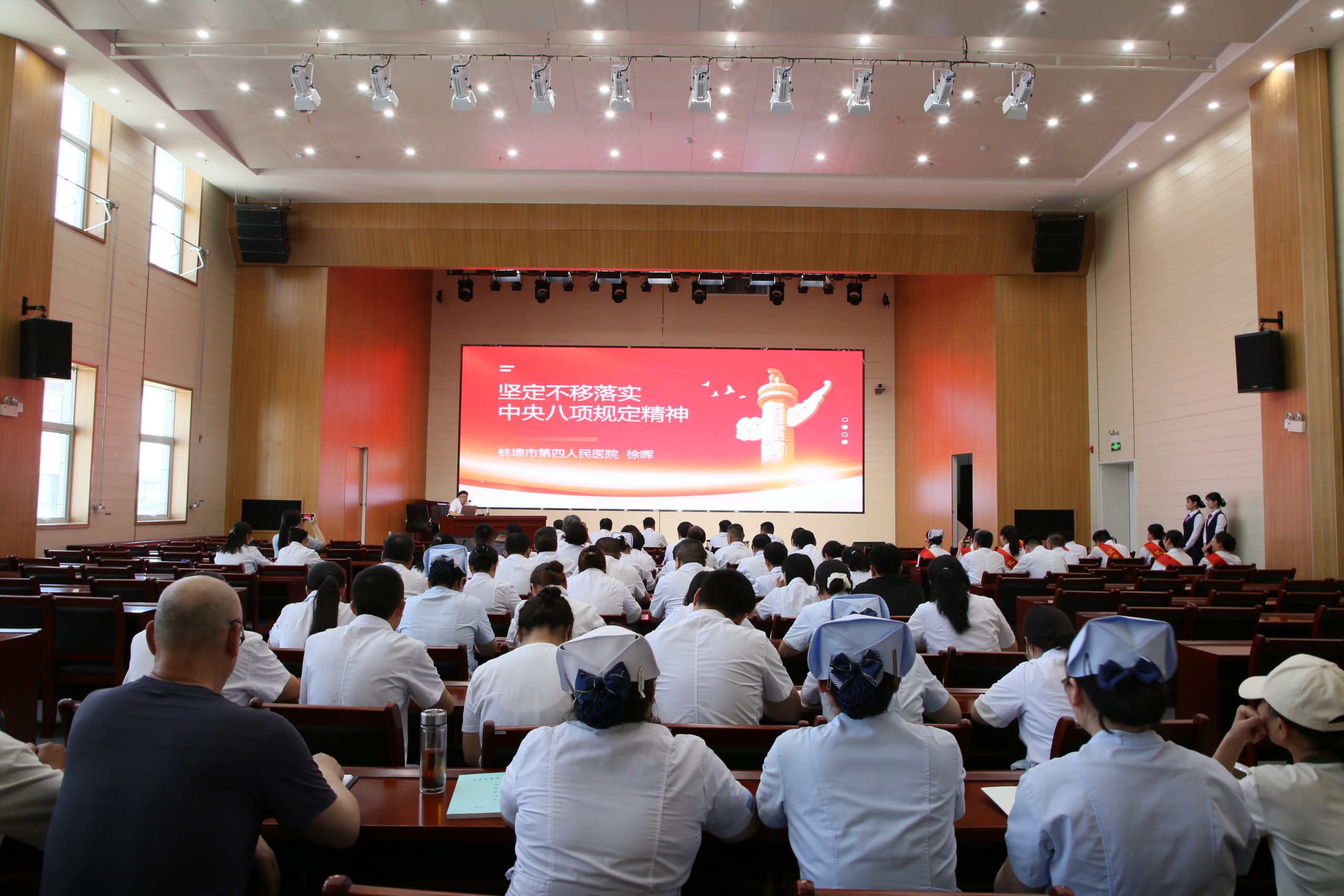 为庆祝中国共产党成立104周年,表彰先进典型,进一步动员和激励全院党员、中层干部踔厉奋发、勇毅前行,擘画医疗事业发展新篇,6月30日,蚌埠市第四人民医院(市康复医院)召开“七一”表彰大会暨党课报告会。大会表彰了我院优秀共产党员、优秀党务工作者和先进基层党组织,院党总支书记徐晖在会上讲授关于深入贯彻中央八项规定精神学习教育专题党课。全体党员、中层干部参加会议。大会由党总支副书记、院长施彪主持。