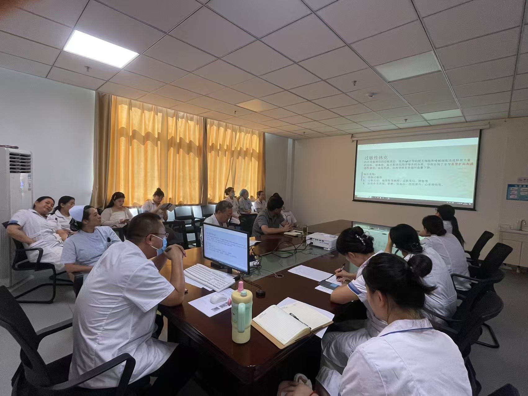 演练前,陈小虎医师为全体医务人员进行专题培训,系统讲解过敏性休克的识别要点(如呼吸困难、面部潮红、全身瘙痒等)、紧急处置规范(包括肾上腺素使用指征与方法)及后续转运流程等关键知识,为演练顺利开展筑牢理论基础。