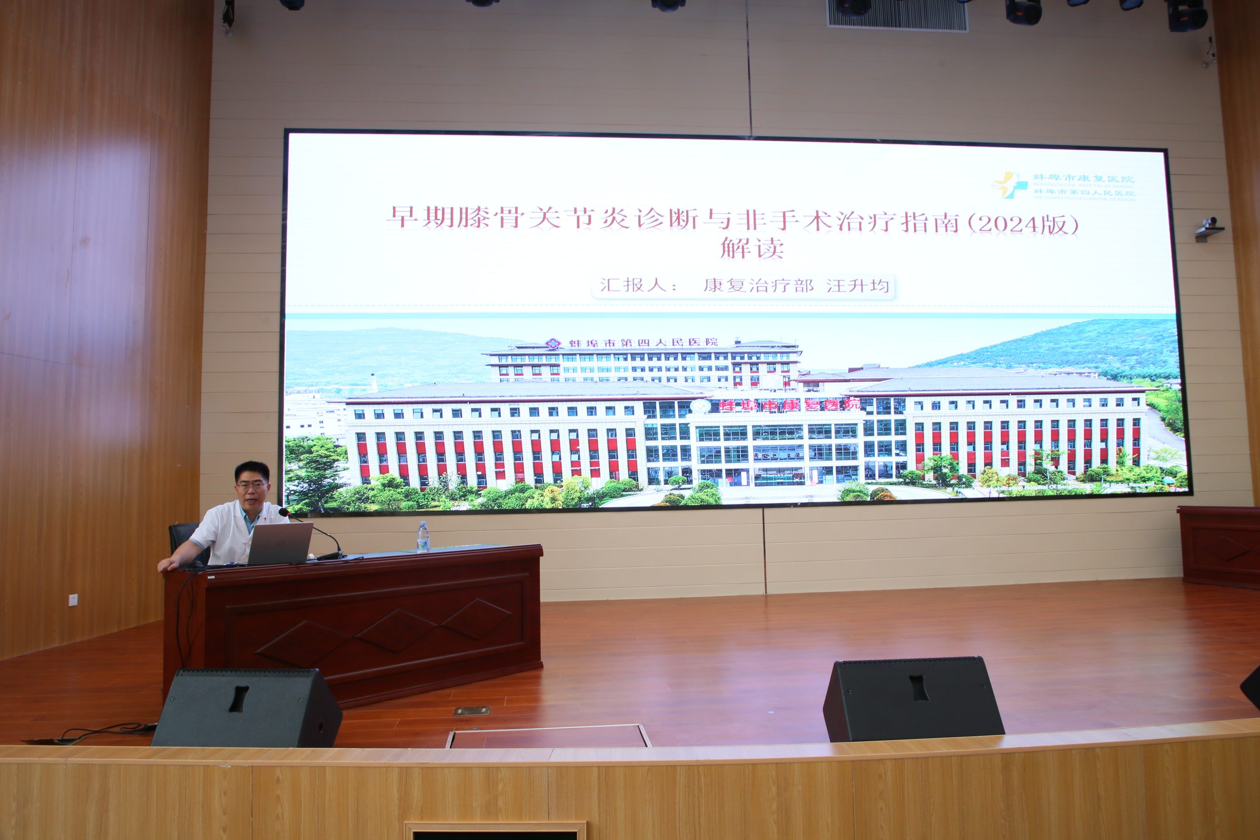 随后,蚌埠市康复医院(市四院)康复治疗部主任、中医康复科主任汪升均进行“早期膝关节炎诊断与非手术治疗治疗指南解读”,详细解读指南要点,规范早期膝关节炎诊疗。