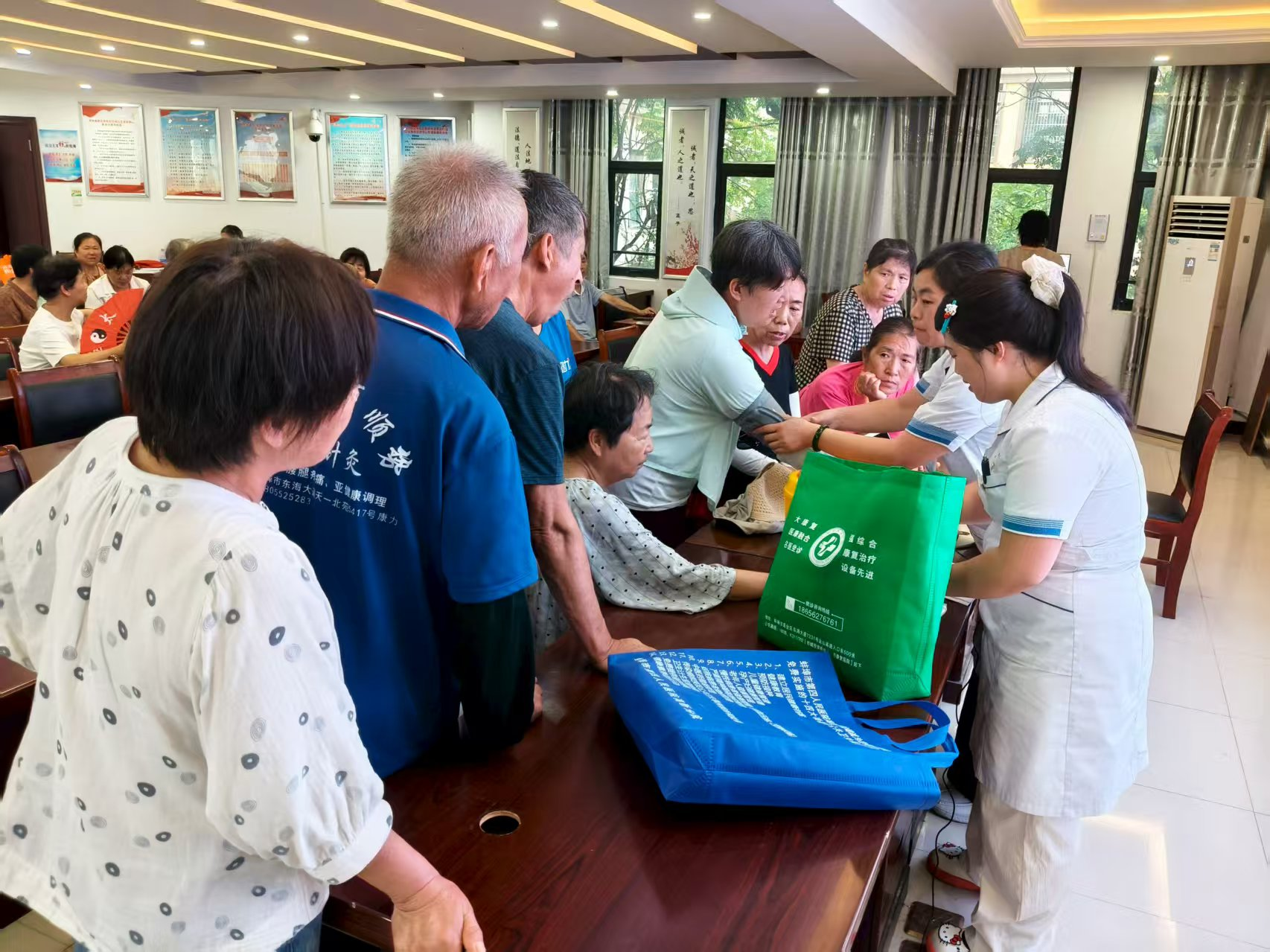 讲座结束后,虹斌工作室工作人员给参加讲座的老年朋友免费测血压、血糖。测量过程中,遇到超过正常值的,赵达医生耐心询问其健康状况,告知血压高、血糖高带来的危害及并发症,并结合身体状况建议进行适当活动、安排合理饮食。