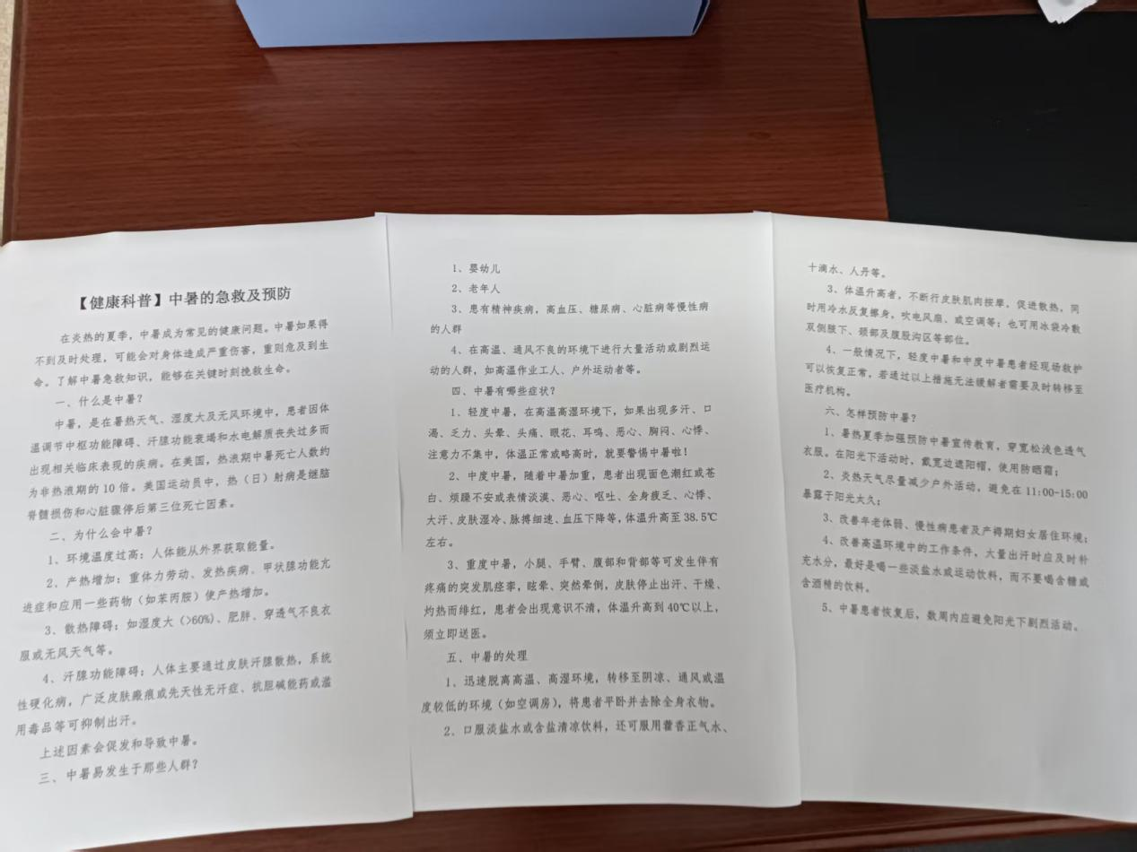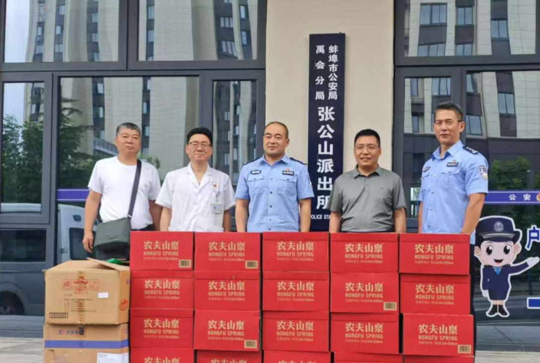 此次活动由蚌埠市第四人民医院(市康复医院)党总支委员、副院长冯亮带领工会主任赵德好、团总支副书记方旭、市场运营部负责人余坤、徐香志愿者服务站负责人徐香和精神康复科护士长孙虎伟,为烈日下坚守一线的派出所的干警送上矿泉水、风油精、清凉油、藿香正气水、毛巾、香皂等降温解暑物品,以及《中暑的急救及预防》健康科普宣教材料。他们对干警们在高温下的坚守和辛勤付出表示感谢,并叮嘱大家要劳逸结合,做好防暑降温。