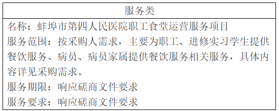 二、项目名称:蚌埠市第四人民医院职工食堂运营服务项目