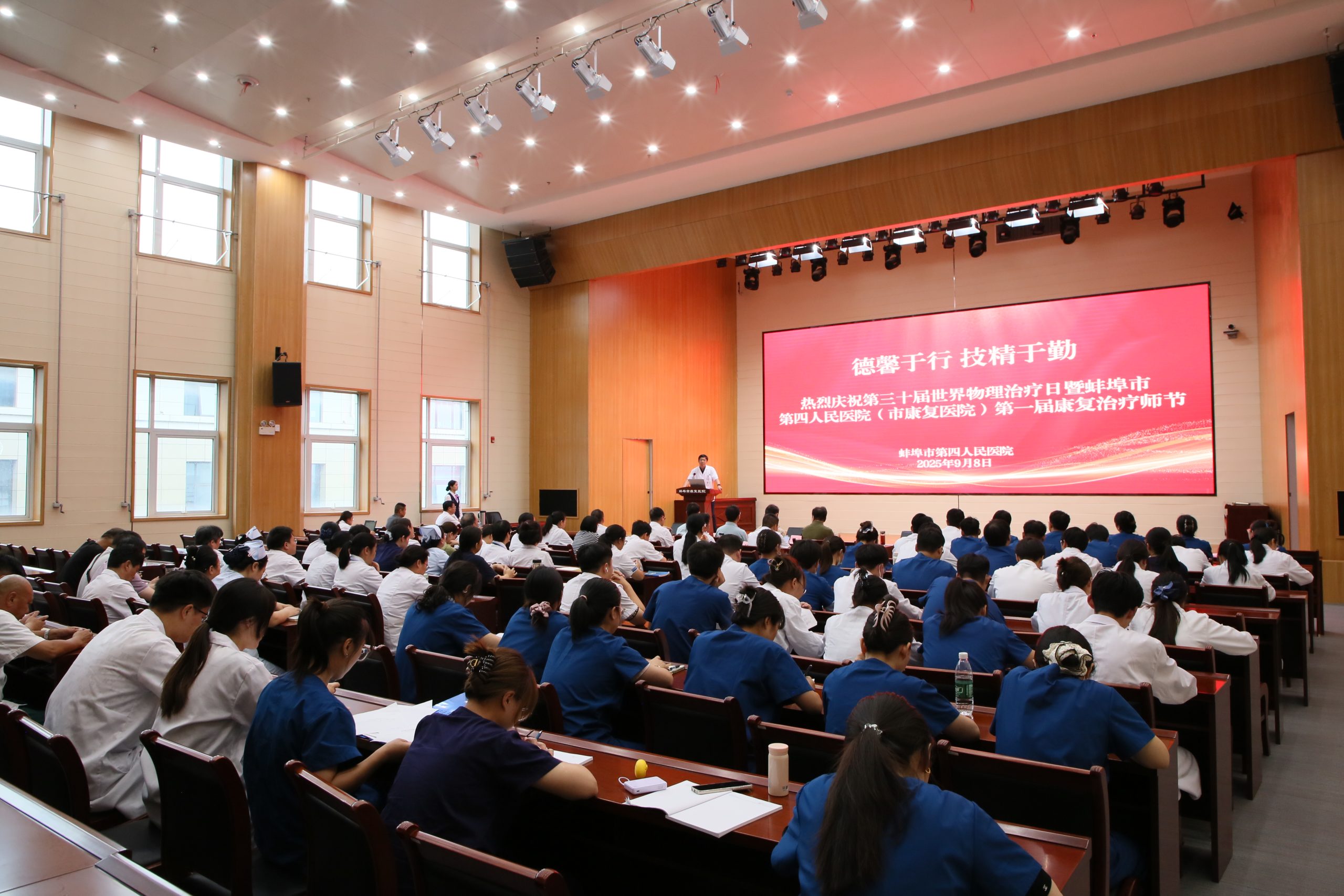 9月8日,在第三十届世界物理治疗日到来之际,蚌埠市第四人民医院(市康复医院)隆重举办首届康复治疗师节庆祝仪式,通过表彰先进、技术展示、专家讲座等形式,向全体康复治疗师致以节日问候,并凝聚行业力量、共谋康复事业高质量发展。市卫健委、市康复医学会领导及医院班子成员、全体中层干部出席活动,与全体康复治疗师共同见证这一重要时刻。