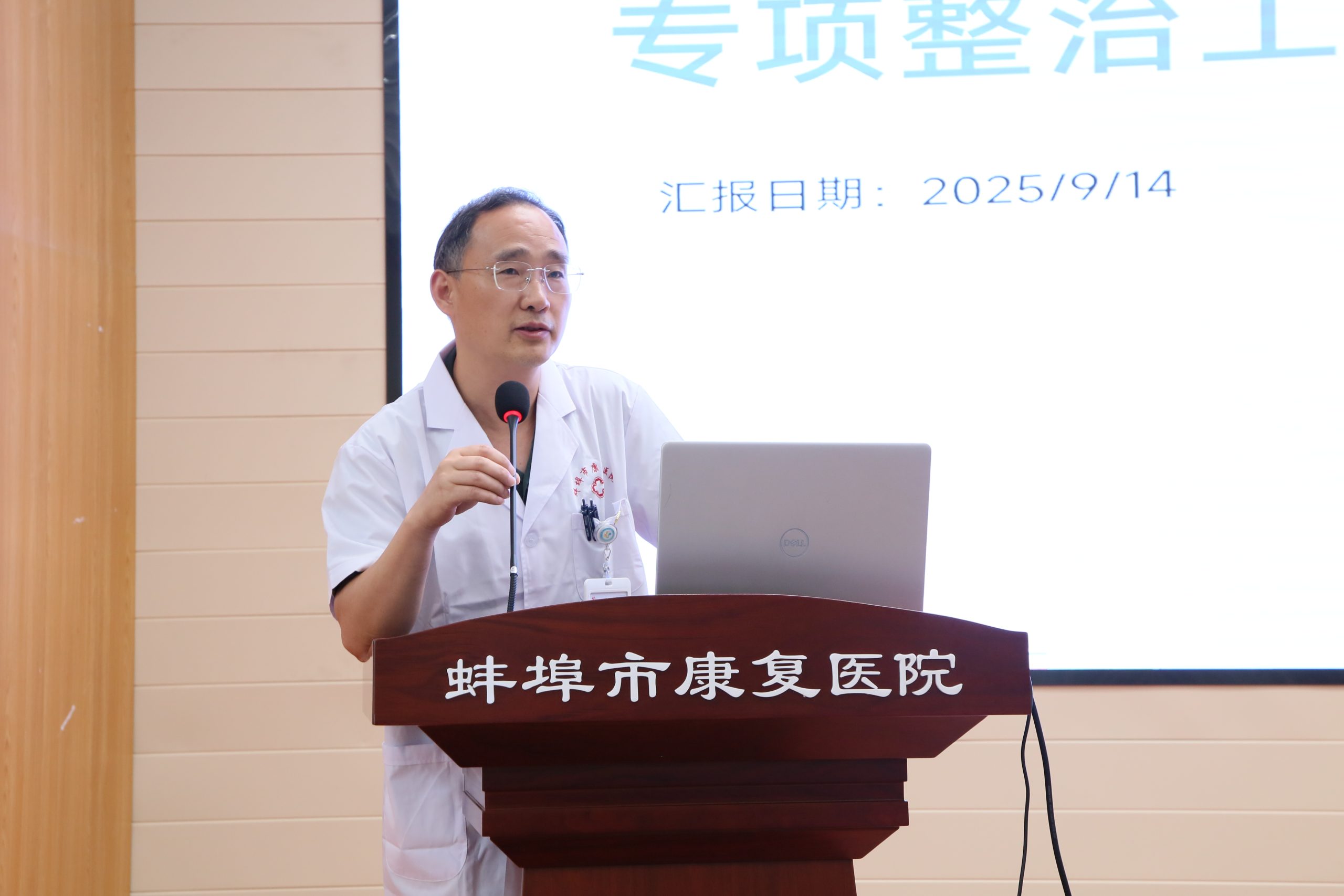 2025年9月14日,蚌埠市第四人民医院(市康复医院)召开全院职工大会,围绕医疗质量提升、财务运行分析、学科建设进展、安全生产工作及医德医风集中整治等核心议题展开部署。会议由党总支副书记、院长施彪主持,全院职工参会。