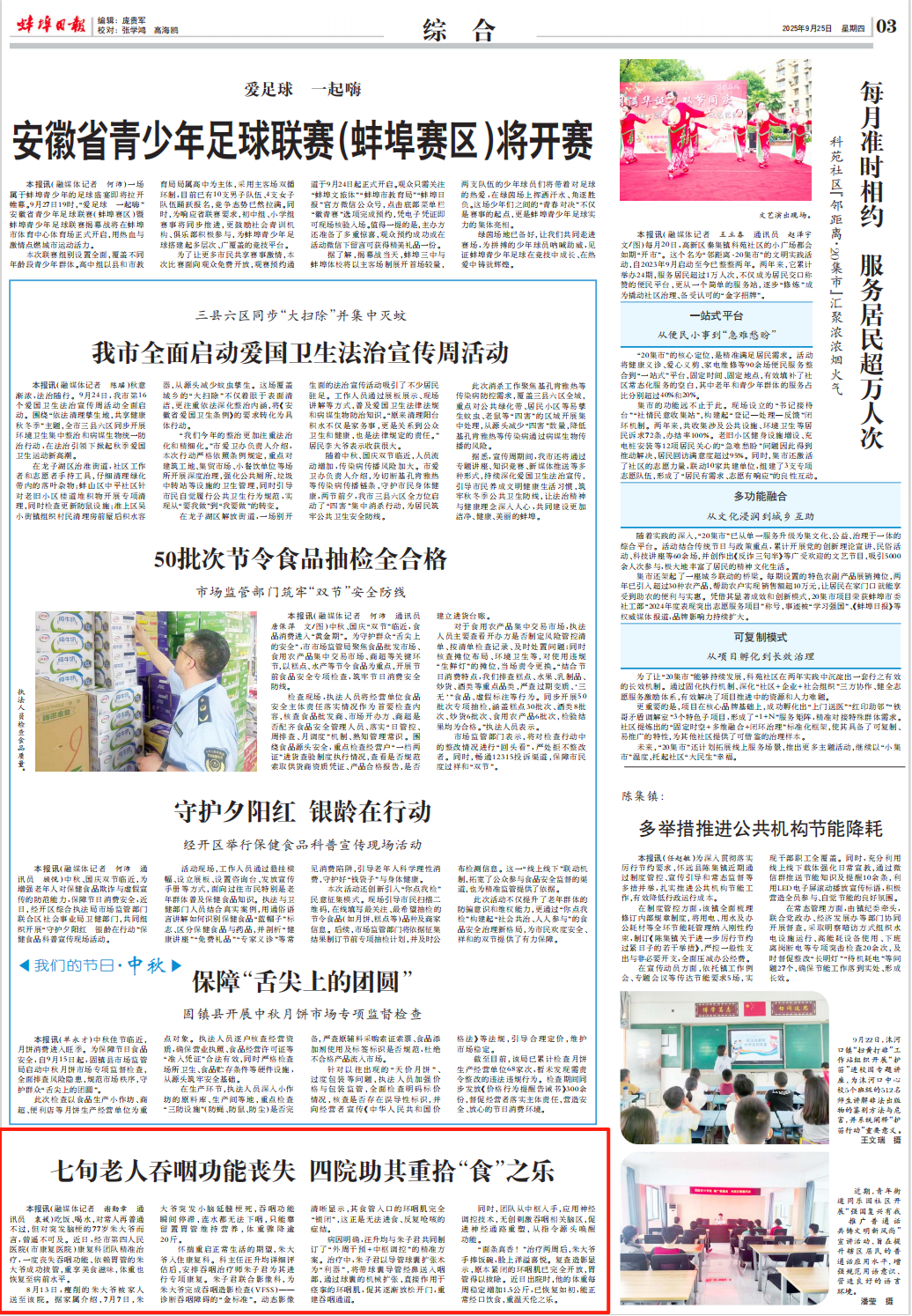 七旬老人吞咽功能丧失 四院助其重拾“食”之乐