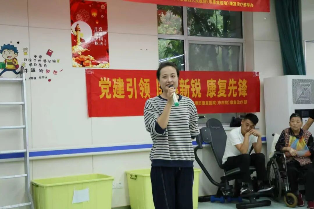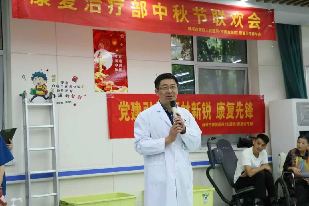 中秋佳节到来之际,为了弘扬传统文化,营造节日氛围,丰富住院患者的生活,2025年9月26日下午4时,蚌埠市第四人民医院(市康复医院)康复治疗部志愿者服务队以“月满中秋,情暖康复”为主题,精心组织了一场融合传统节日文化与康复治疗的迎中秋医患联欢会。活动由康复治疗部主任兼党支部书记汪升均和服务队队长邱悦铭策划,是“医林新锐·康复先锋”党建品牌人文关怀的生动体现。