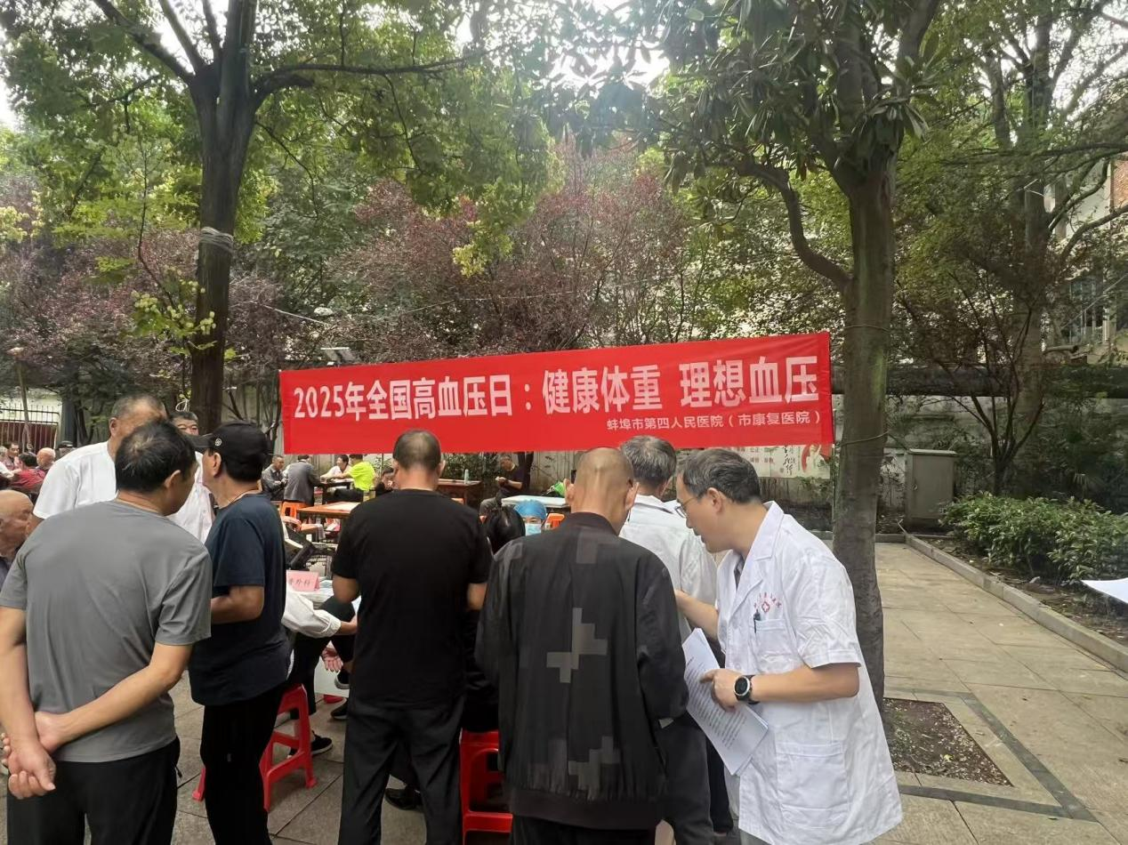 高血压是最常见的慢性病,也是心脑血管疾病最主要的危险因素。2025年10月8日是我国第28个全国高血压日,今年的主题“健康体重,理想血压”。为进一步增强全民自我保健意识,倡导健康生活方式,降低高血压及其并发症的发生风险与危害,蚌埠市第四人民医院(市康复医院)心血管内科、老年康复科、神经康复科,在我院张公山院区对面东海游园联合开展全国高血压日宣传义诊活动,吸引了众多群众参与。