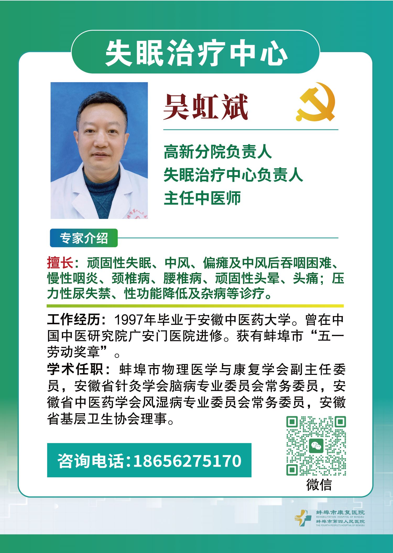 系列活动第二站将落地蚌山区青年街道南山社区,医院特选派老年康复科、中医康复科、神经康复科、女性康美中心(妇科康复专项)、失眠治疗中心主任团队及康复治疗部的治疗团队,重点面向中老年人、术后康复人群、慢性病患者、女性群体(含产后妈妈、更年期女性、妇科康复需求者)、睡眠障碍患者、颈肩腰腿痛高发人群开展免费诊疗服务,让市民在家门口即可享受到专业、优质的康复医疗服务!