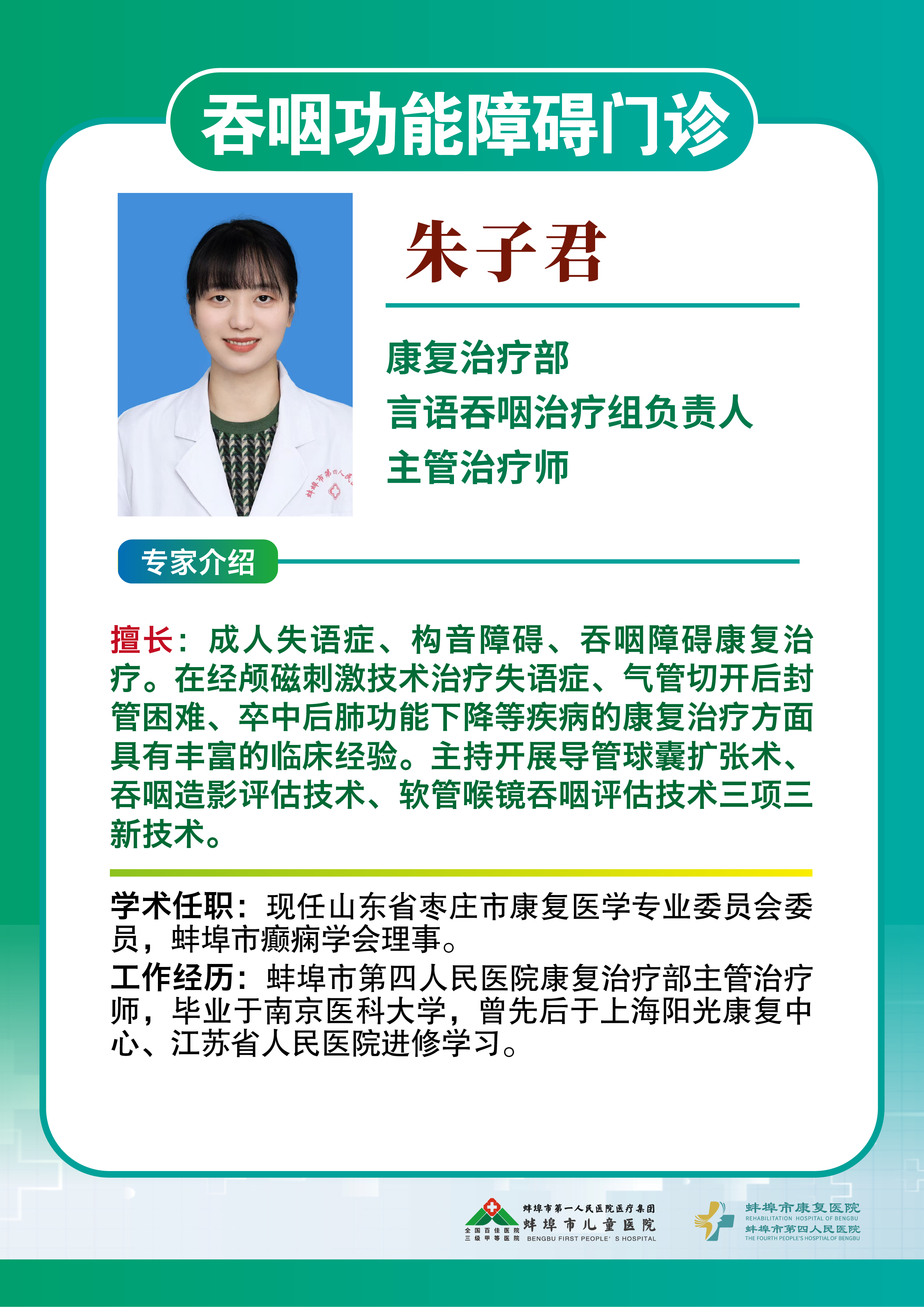 吞之有道,康复有术;言之有理,健康可期!蚌埠市第四人民医院(市康复医院)吞咽功能障碍专病门诊用专业康复力量为您的进食安全保驾护航,让“好好吃饭”不再是奢望!