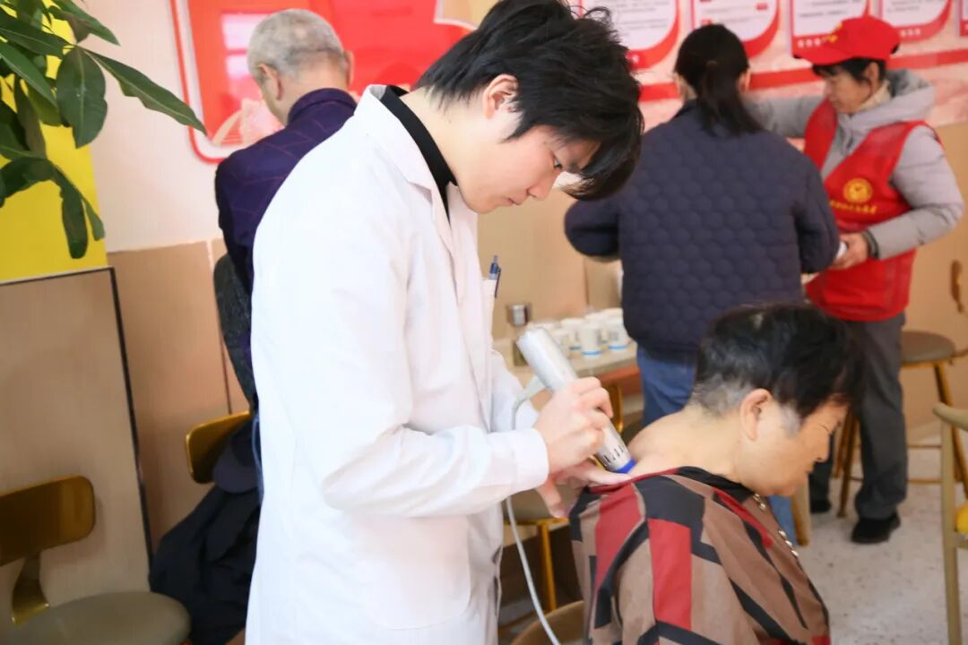 上午9时,在中平社区的统筹协调下,义诊现场秩序井然,居民们有序排队等候咨询。社区为此次义诊提供了全方位的保障支持,不仅提前通过网格群、公告栏等方式广泛宣传,还布置好义诊场地、准备好各类便民物资,确保活动顺利开展。现场来自蚌埠市第四人民医院(市康复医院)中医科、神经康复科、骨科、睡眠门诊、女性康美中心及康复治疗部的医护人员,与特邀的长三角知名康复专家(原宁波市第二医院康复科主任)郭旭教授一道,为居民提供多样化健康服务。中医科团队现场展示针灸、针刀等传统疗法,结合居民体质开具调理处方;神经康复科引入智能评估系统,为脑卒中后遗症患者制定居家康复计划;骨科专家针对老年骨质疏松、关节退行性病变等问题,提供用药指导与运动建议;睡眠门诊通过睡眠监测仪器,为失眠人群分析睡眠周期,定制非药物干预方案;女性康美中心推出“中医美容+康复理疗”融合服务和盆底康复设备体验,吸引众多女性居民参与;社区工作人员与医护人员配合,为居民测量血压、血糖,筛查高血压、糖尿病等慢性病,并根据检查结果给予用药指导和饮食建议。此外,康复治疗部带来的冲击波治疗仪、筋膜枪等设备前也排起长队,一位长期伏案工作的白领体验后表示:“冲击波治疗像‘深层按摩’,当场缓解了肩颈僵硬,比贴膏药管用多了!”中平社区的贴心服务和高效组织,让义诊活动成效显著。一位长期受肩周炎困扰的居民在体验郭旭教授的治疗后感慨:“社区把专家请到家门口,不用跑大医院排队挂号,专家还手把手教康复技巧,留了24小时咨询热线,太贴心了!”郭旭教授凭借30余年骨科与康复医学交叉领域经验,针对颈椎病、腰椎间盘突出、运动损伤等病症,为居民制定“精准评估+快速康复”的个性化方案。他表示,青年街道中平社区对居民健康需求的精准把握和高效的组织能力,让义诊服务真正落到了实处,今后希望与社区常态化合作,持续走进社区普及康复知识、传授实用康复技巧,让更多居民受益。