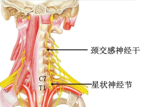 星状神经节是颈部重要的交感神经节,位于颈部第7颈椎横突基底部与第1肋骨颈前方,因形态似星而得名,是调节头、颈、上肢及上胸部交感神经活动的关键节点。星状神经节阻滞技术,是通过向星状神经节周围注射局麻药物,暂时阻断其交感神经传导,从而实现自主神经、内分泌与免疫系统调节的微创治疗手段。