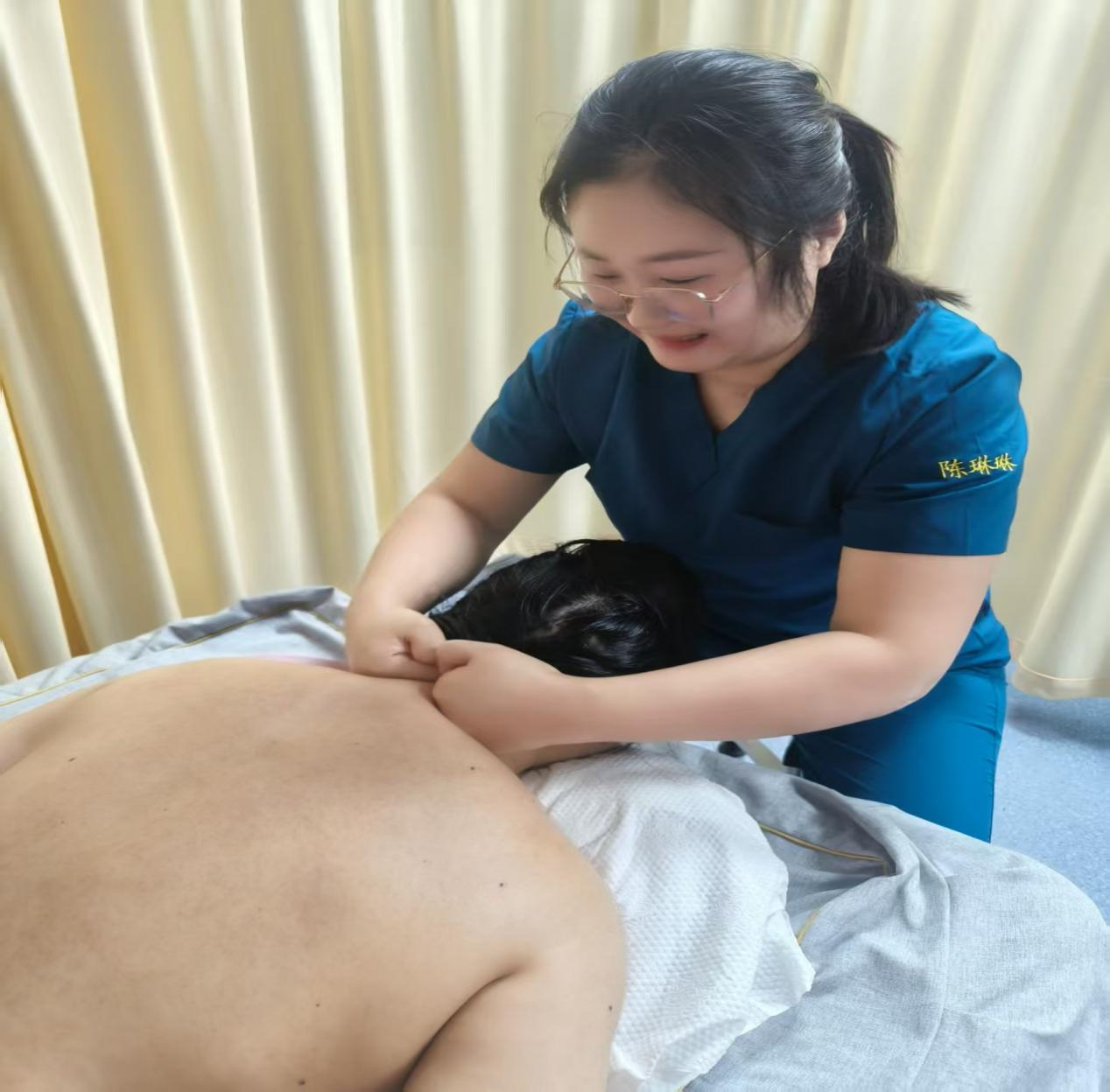 温润的精油顺着肌肤缓缓推开,专业医护的指尖带着恰到好处的力道,循着肩背的经络与穴位慢慢推拿。从紧绷的肩颈到僵硬的腰背,每一次揉捏、按压、推拿,都精准揉开肌肉结节,让紧绷的筋膜渐渐舒展。精油的草本香气萦绕鼻尖,温热的触感渗透肌肤,仿佛能将身体里的疲惫与郁气一同带走。