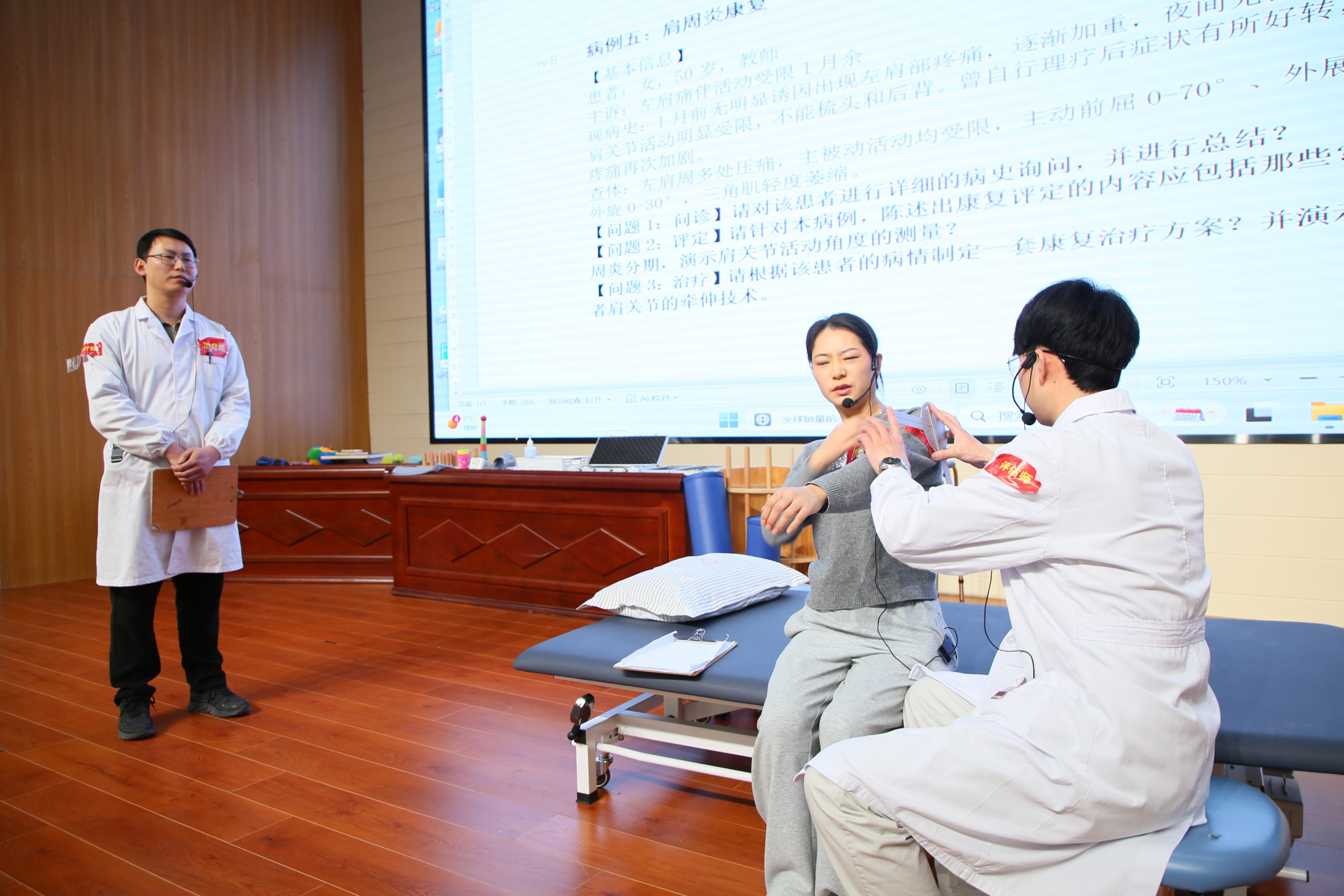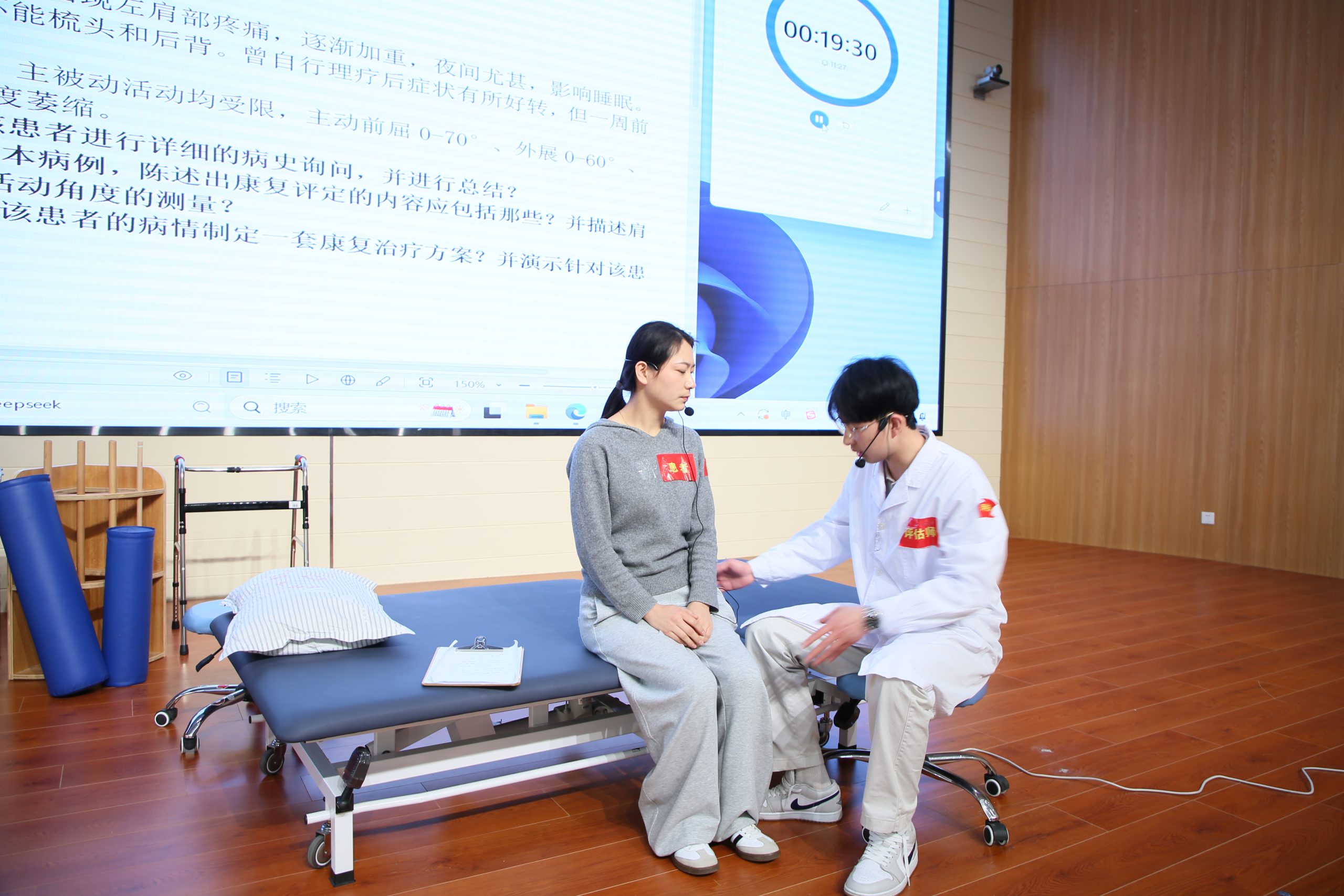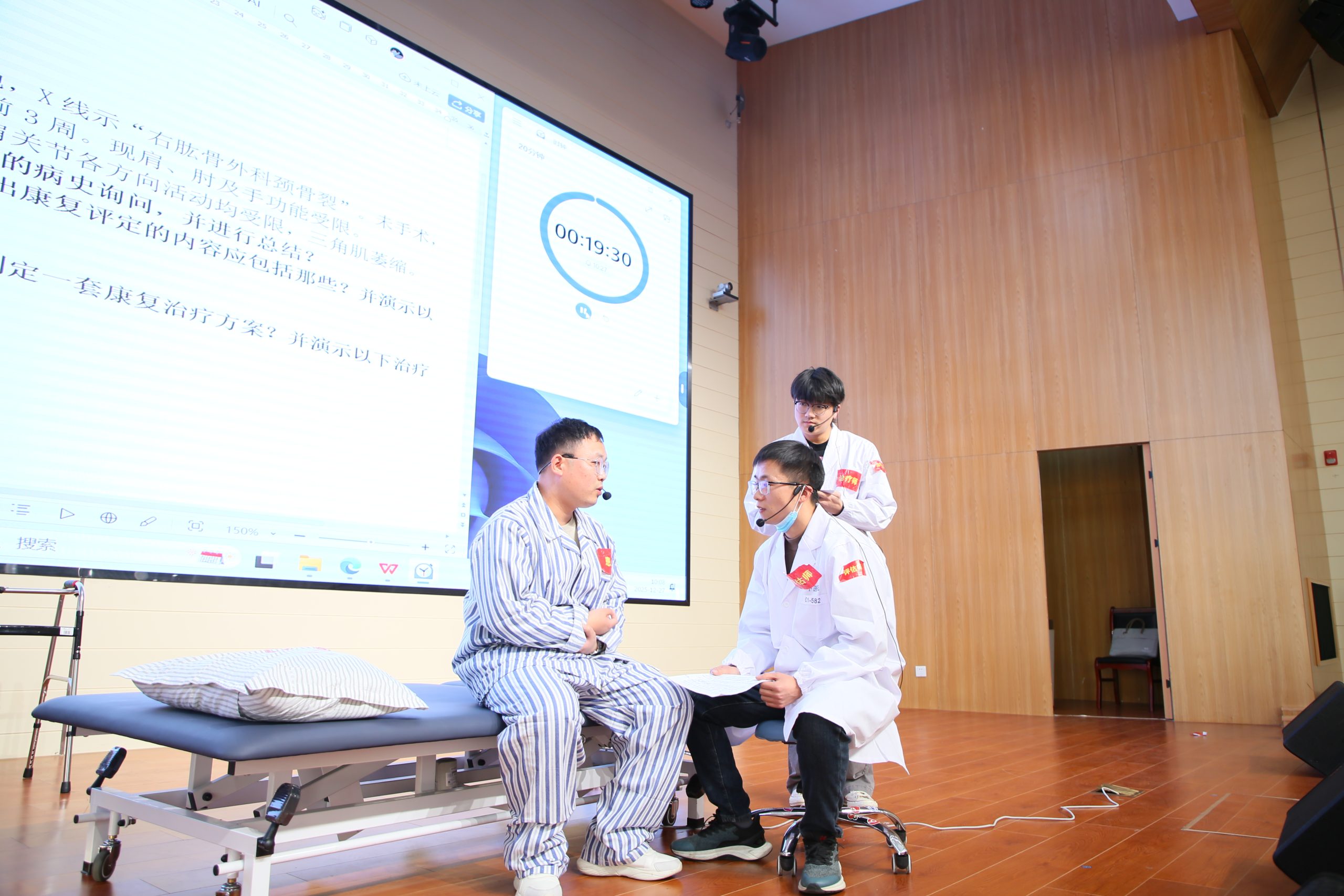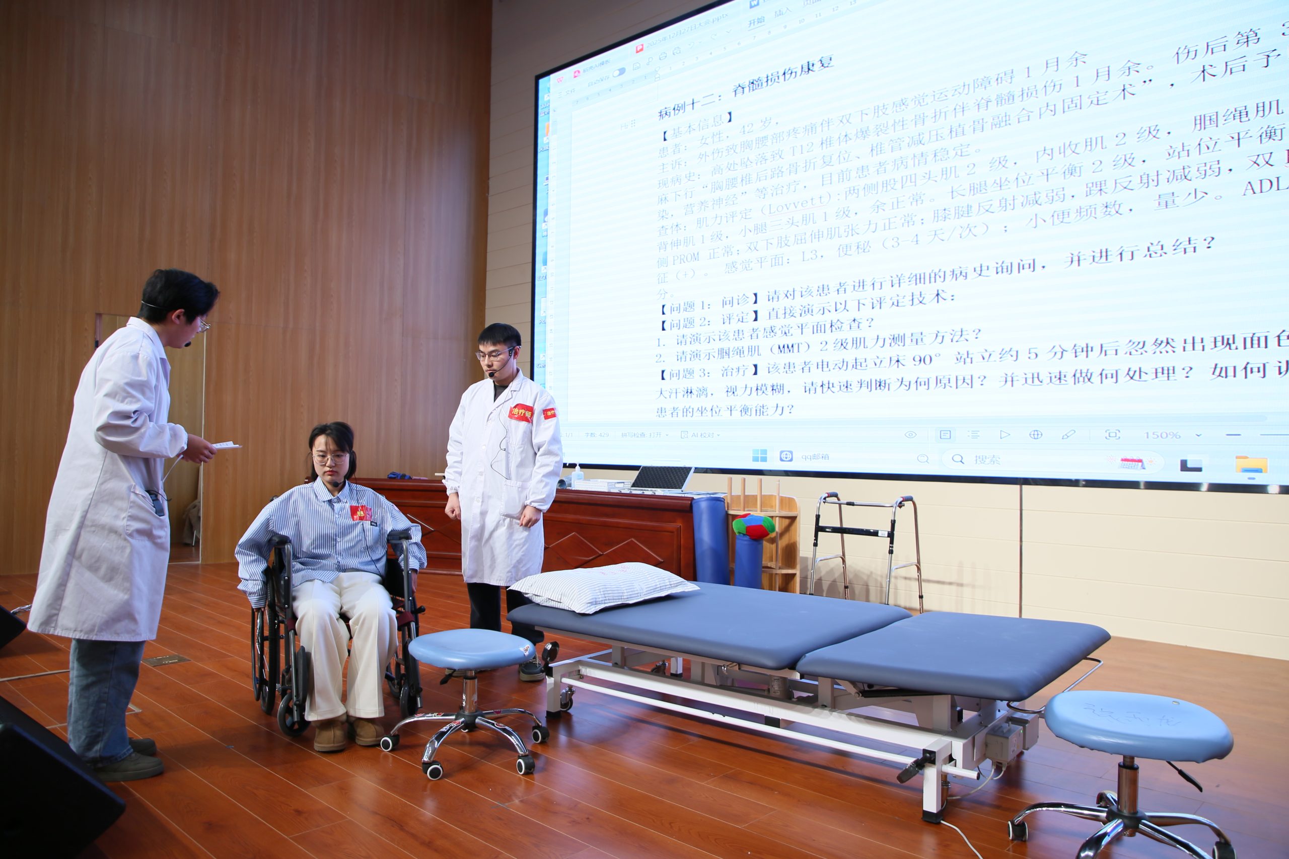 赛场内气氛紧张而有序,每支代表队由3名选手组成,分别扮演标准化病人、评估师和治疗师,需在限定时间内完成从病史询问、功能评估到制定并演示治疗方案的完整流程。