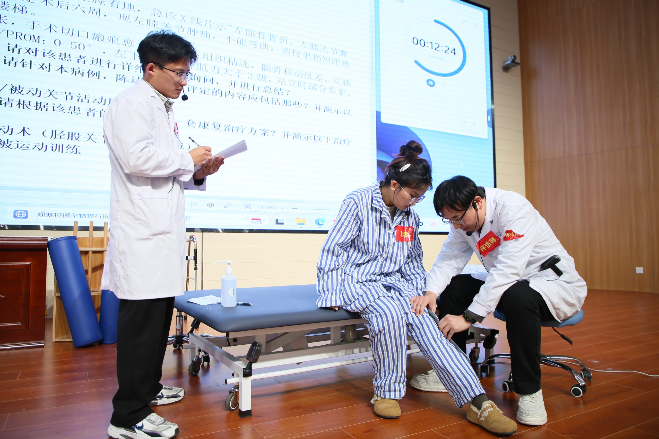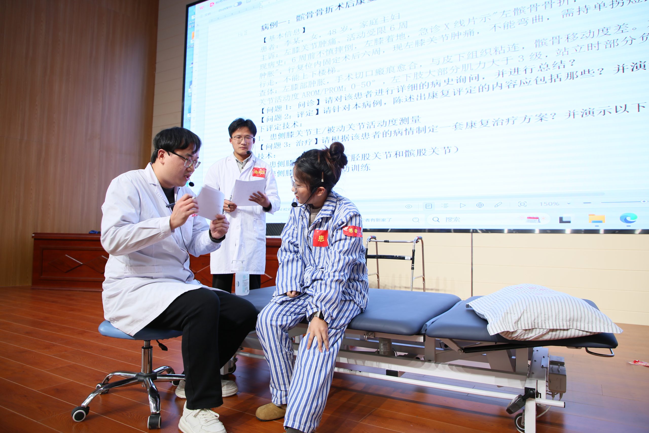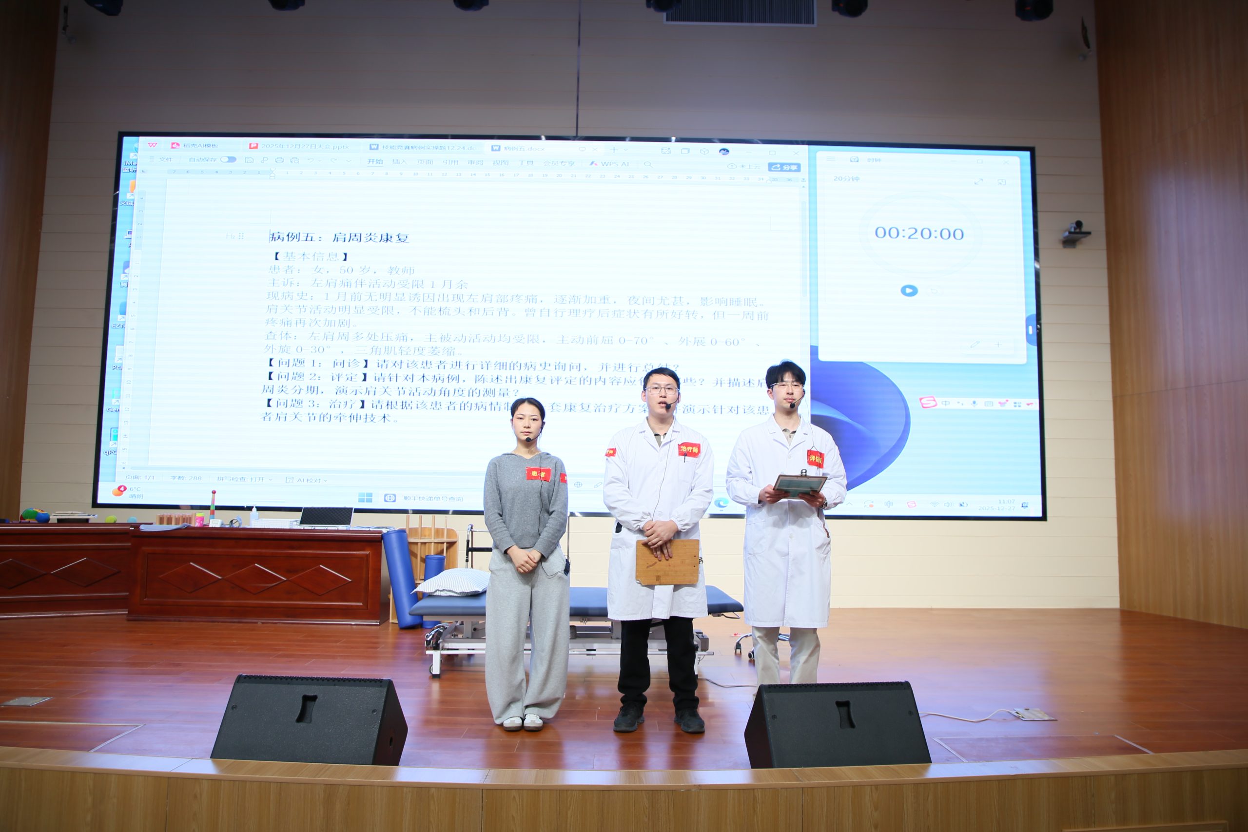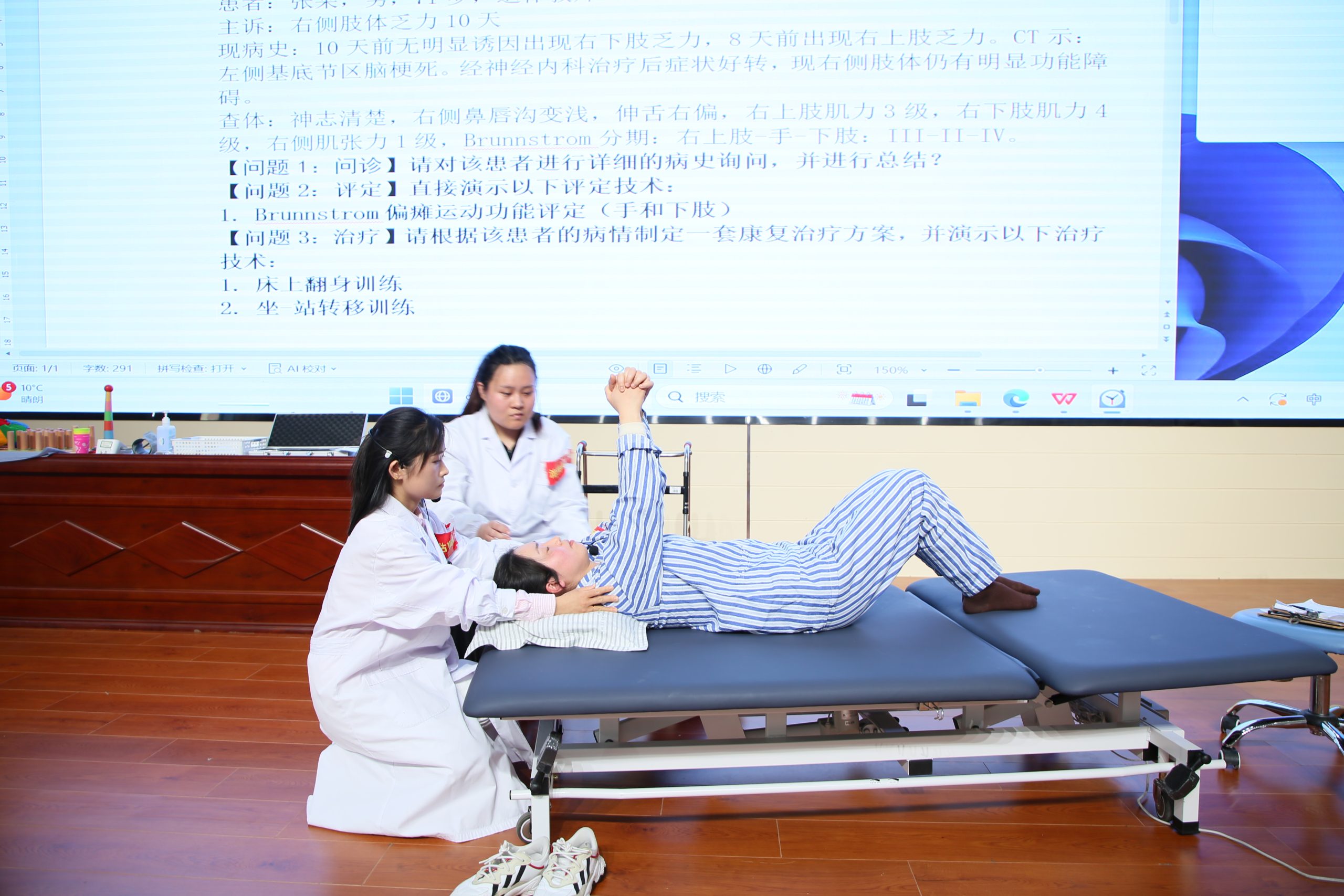 赛场内气氛紧张而有序,每支代表队由3名选手组成,分别扮演标准化病人、评估师和治疗师,需在限定时间内完成从病史询问、功能评估到制定并演示治疗方案的完整流程。