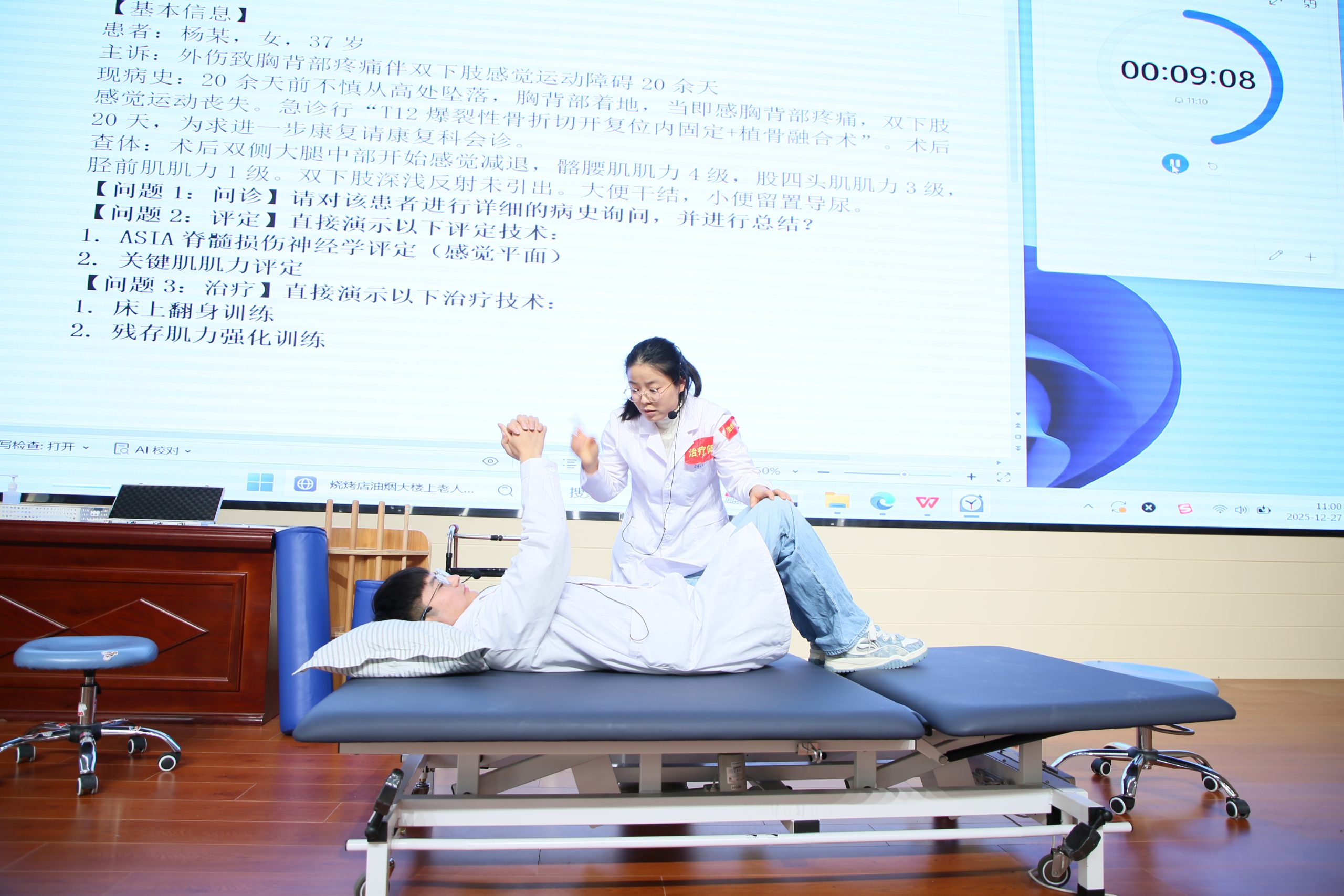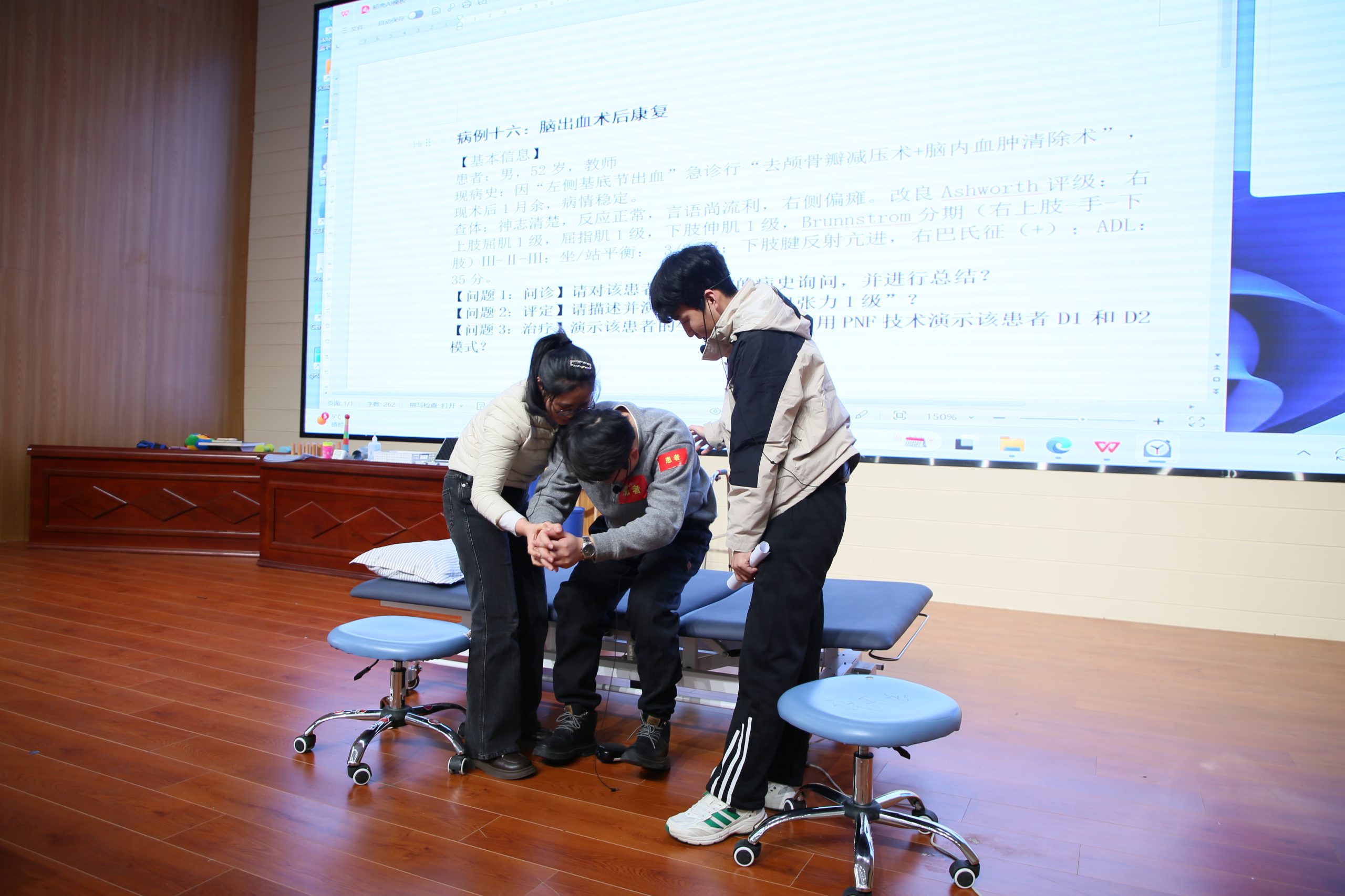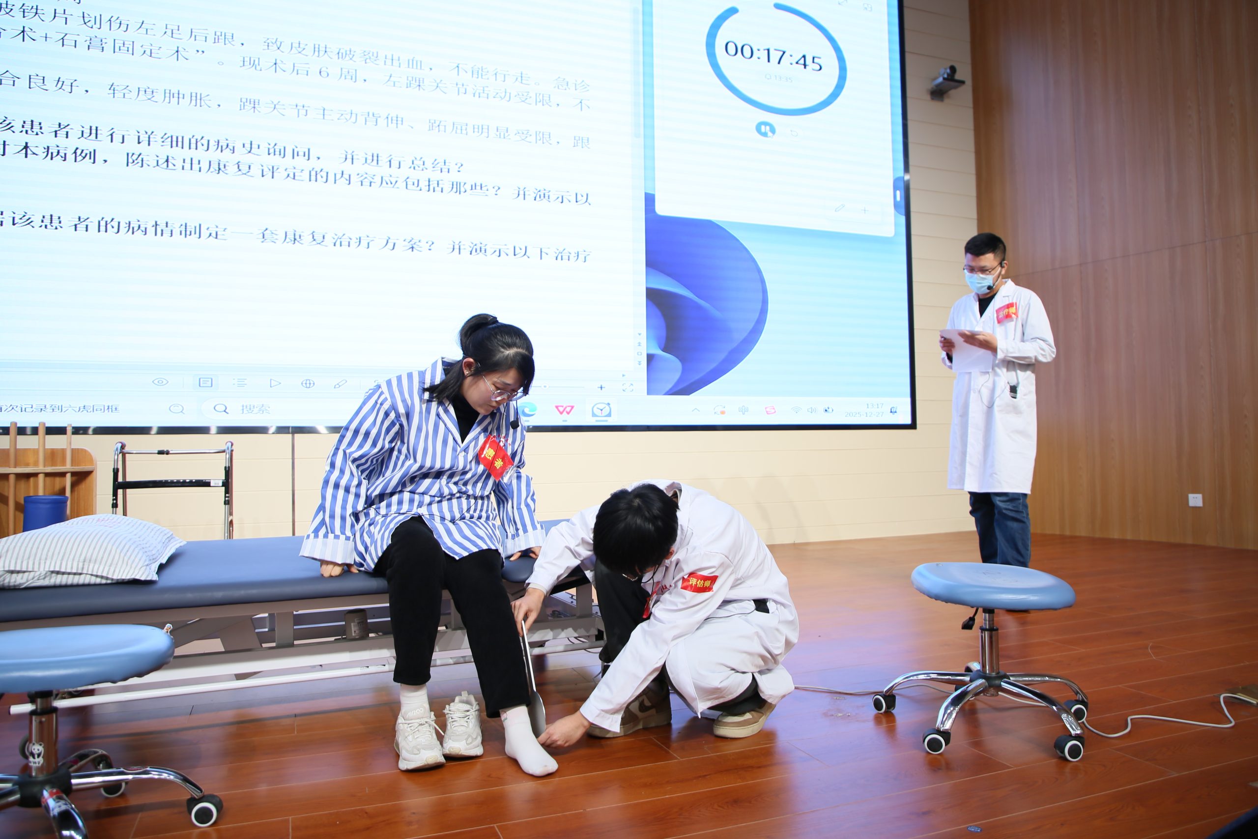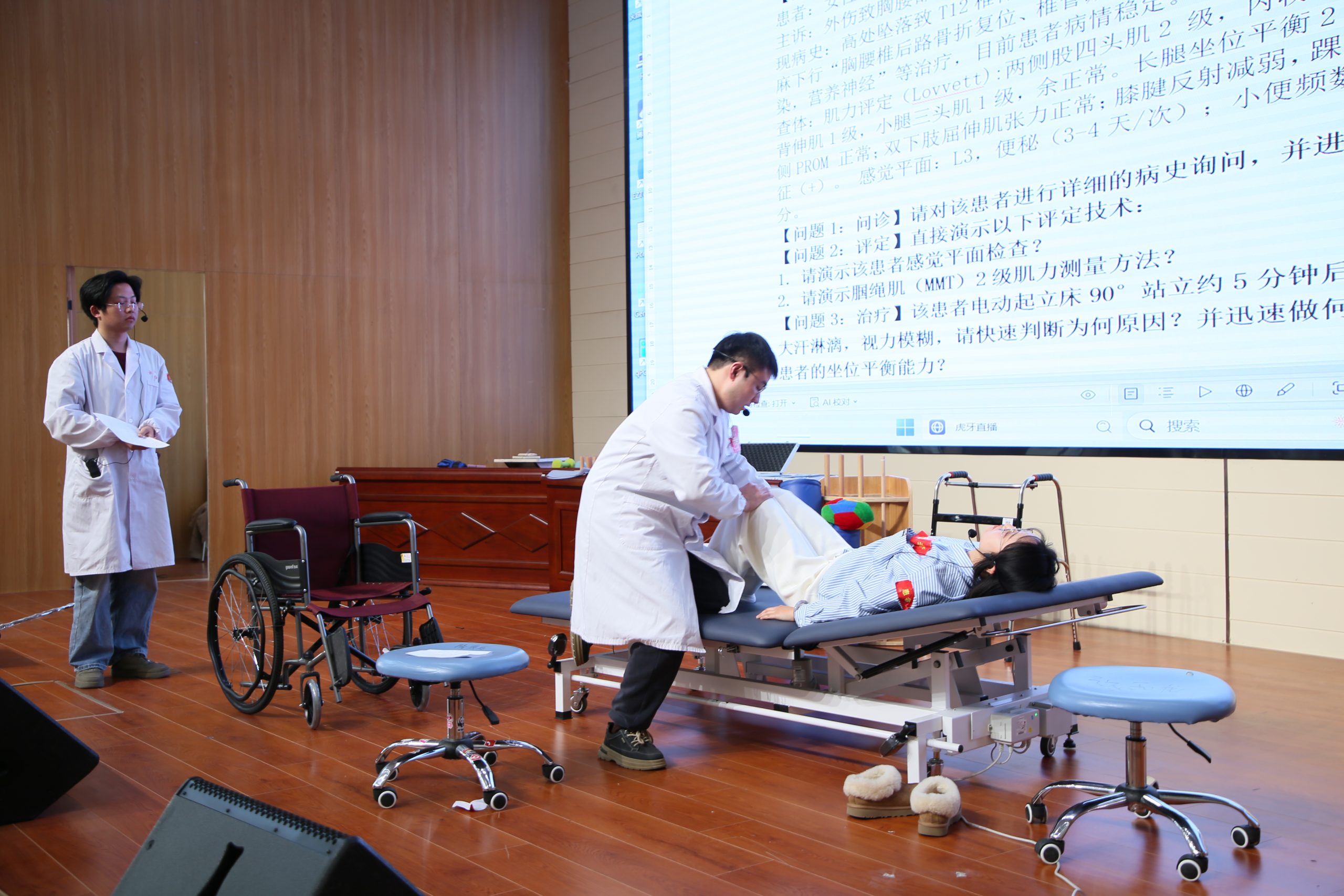 赛场内气氛紧张而有序,每支代表队由3名选手组成,分别扮演标准化病人、评估师和治疗师,需在限定时间内完成从病史询问、功能评估到制定并演示治疗方案的完整流程。