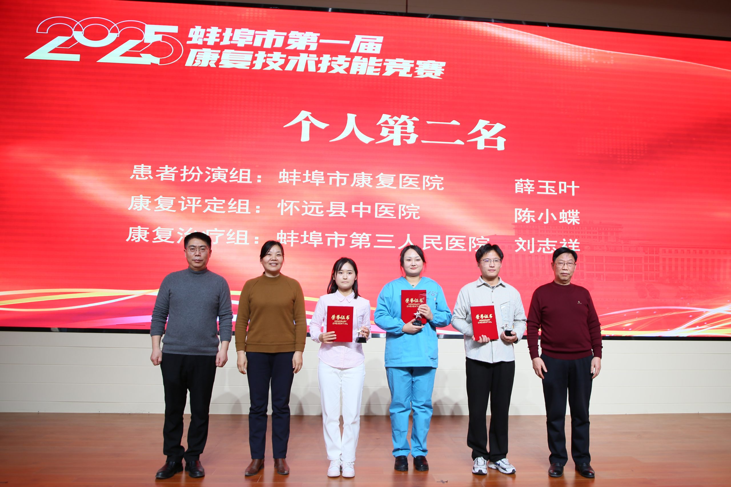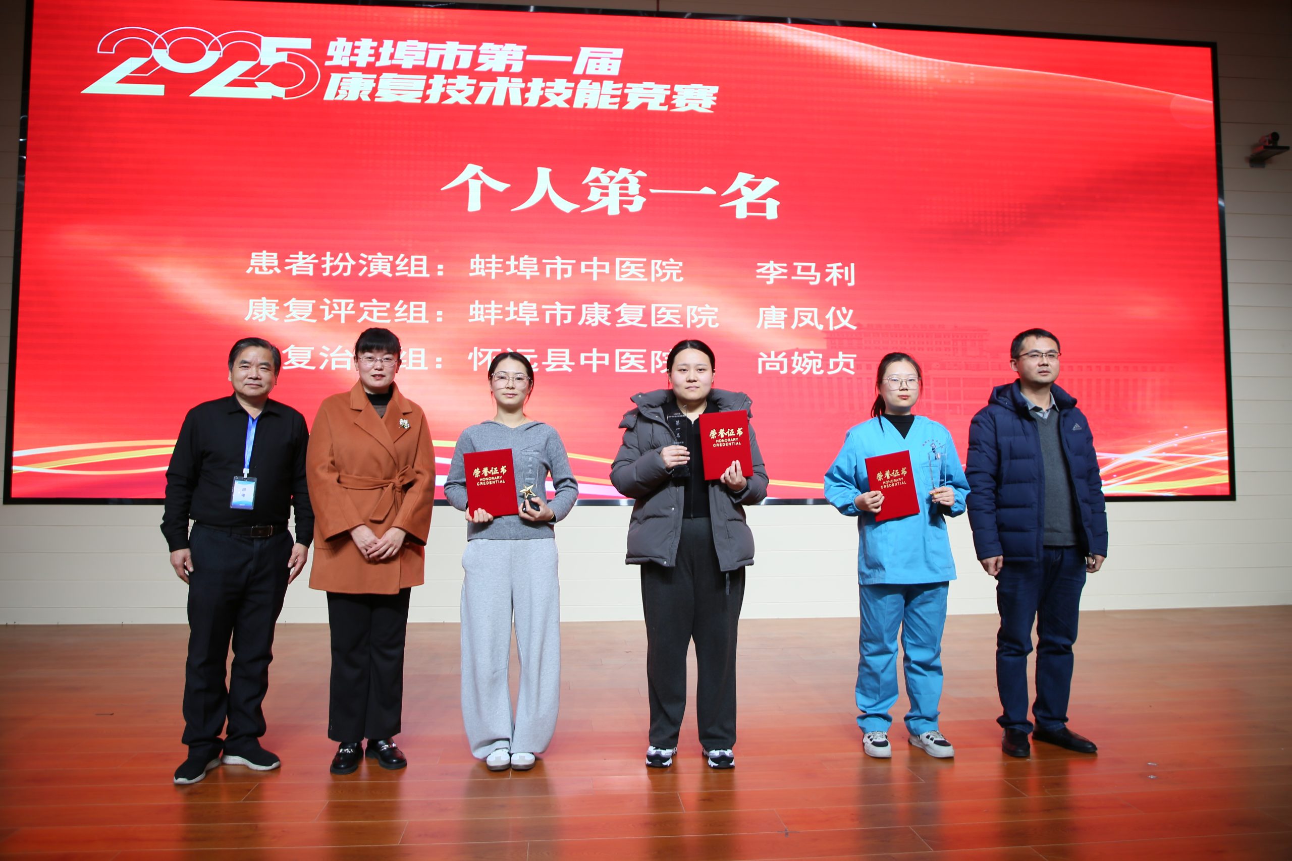 竞赛最终评出个人奖与团体奖。个人奖按患者扮演、康复评定、康复治疗三个角色分别评选前三名;团体奖则根据各代表队总成绩排名,决出一、二、三等奖及优胜奖。蚌埠市中医院选手李马利(患者扮演组)、蚌埠市第四人民医院(市康复医院)选手唐凤仪(康复评定组)以及怀远县中医院选手尚婉贞(康复治疗组)分获个人第一名。蚌埠市第四人民医院(市康复医院)荣获团体一等奖。