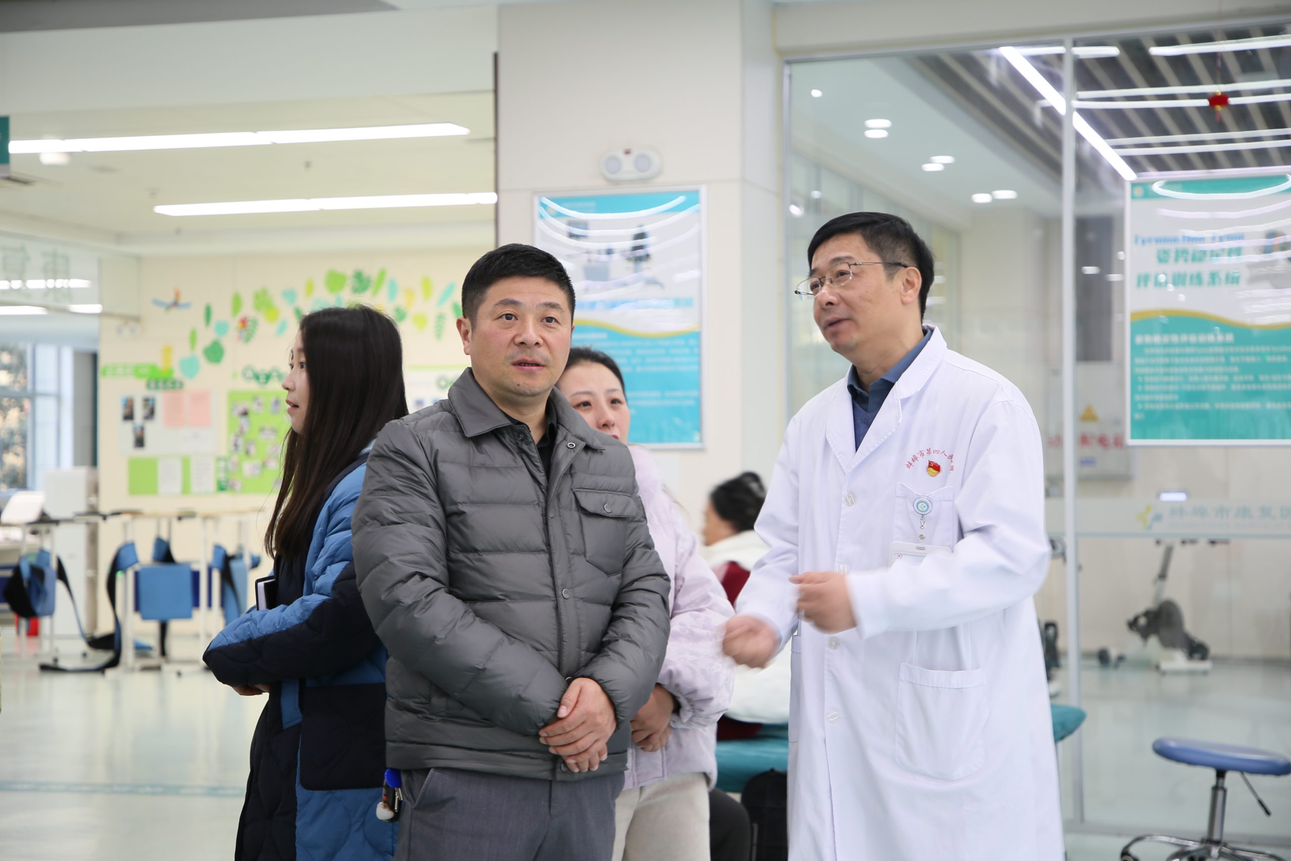 最后,调研组实地参观了无陪护病房、康复治疗大厅、言语吞咽治疗中心及康养病区,详细了解康复设备、诊疗流程、患者管理及多学科协作模式。整洁有序的医疗环境、专业高效的康复团队、先进完善的设施设备给调研组留下了深刻印象。在参观过程中,胡胜明不时驻足询问康复技术应用情况,对医院的精细化服务给予高度评价。