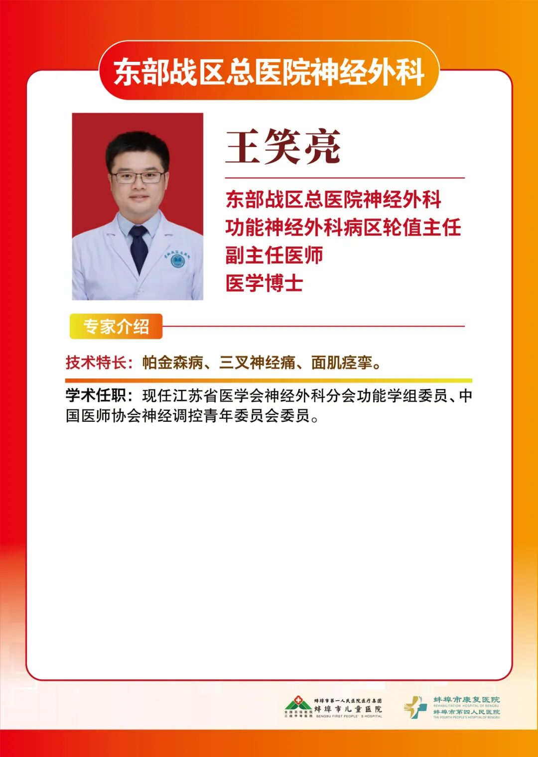 本次义诊专家团队汇聚军地优质医疗资源,东部战区总医院神经外科顶尖专家亲临现场,涵盖神经肿瘤、脑外伤、脑血管病、昏迷促醒、脊柱脊髓疾病等多个专业领域,拥有深厚技术积淀与丰富临床经验;蚌埠市第一人民医院医疗集团骨干团队同步坐诊,深耕昏迷患者术后康复、意识障碍训练、居家护理指导等专业领域,多学科专家强强联合,为市民提供权威诊疗建议。