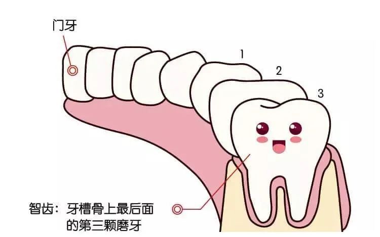 智齿是指人类口腔内牙槽骨上最里面的第三颗磨牙,从正中的门牙往里数刚好是第八颗牙齿。由于它萌出时间很晚,一般在16~25岁间萌出,此时人的生理、心理发育都接近成熟,有“智慧到来”的象征,因此被俗称为“智齿”。