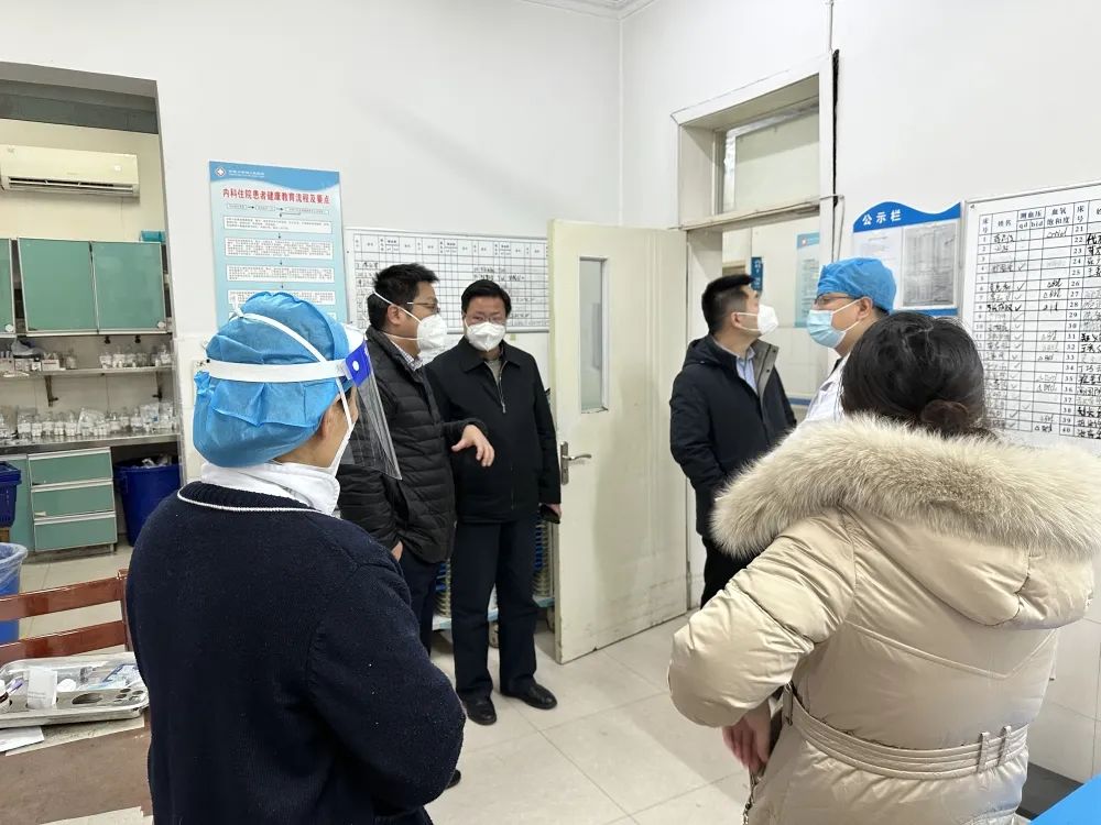 12月24日下午,蚌埠市卫健委主任李剑、医政科科长杨倩一行来我院察看了解医院近期诊疗、发热门诊、新院内科住院病区使用进度等工作开展情况,并前往我院内科住院病区看望慰问我院一线医务工作者。