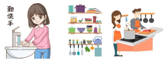 清洗餐具和厨具时,用流动安全的水冲洗、晾干,并经常蒸煮消毒。