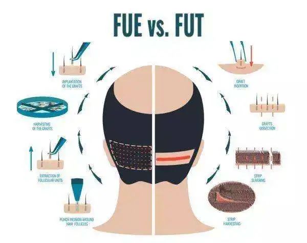 目前国际认可的植发术式主要有两种:FUT和FUE,区别在于提取优势供区的毛发方式不同。