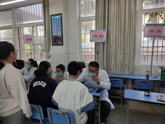 本次学生体检工作,我院高度重视,精心组织,明确人员,责任分工,共选调十余名医务人员走进校园开展体检工作。体检项目主要包括测量身高体重、血压、视力、屈光、沙眼、内科、外科、口腔检查等常规项目。