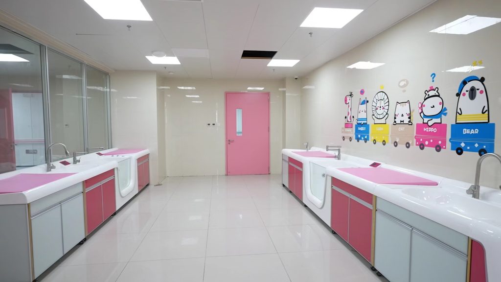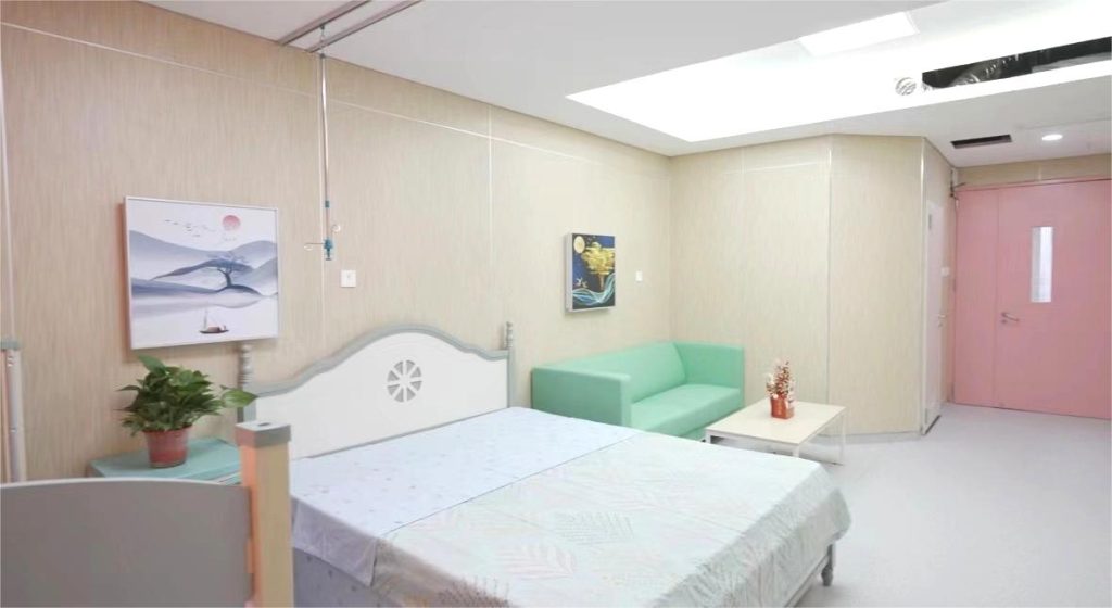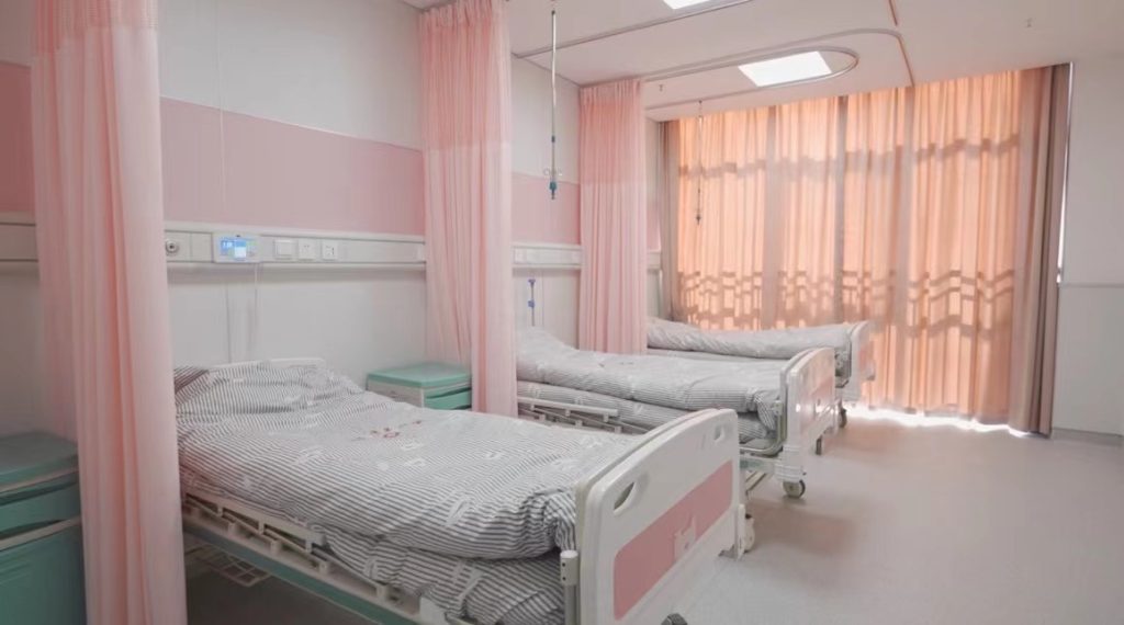 产科病房:新院区配置待产室、隔离待产室、产前检查室、分娩室,隔离分娩室、产后恢复室等,病房设置有单人间、双人间、家庭式VIP病房(独立的卫生间,24小时热水,高档病床,床头柜,电视机、冰箱、微波炉,茶水柜,配奶用的恒温水壶,加湿器),病房设有婴儿游泳室,提供婴儿游泳,抚触,月子中心相关服务并对外开放。