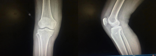 患者,女,35岁,“因右膝外伤肿痛1天”入院。CT示:右胫骨平台髁间骨折,MR检查提示:右膝关节内侧副韧带损伤。完善术前准备后,行“关节镜下右膝髁间棘骨折内固定术+内侧副韧带修复术”,术后恢复良好。