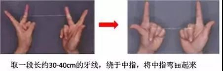 1、取一段长约30-40cm长的牙线,将其两端各绕在左右手的中指上,将中指卷曲起来;