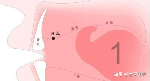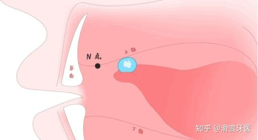 N点训练上切牙后约5mm 处,也是发拼音「n」结束时舌尖的位置。将舌尖顶住该位置保持小张口,保持10秒。5次为1组,每天3组。