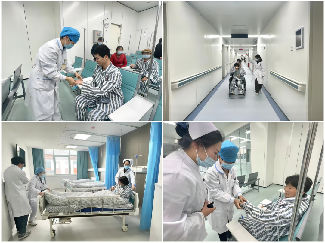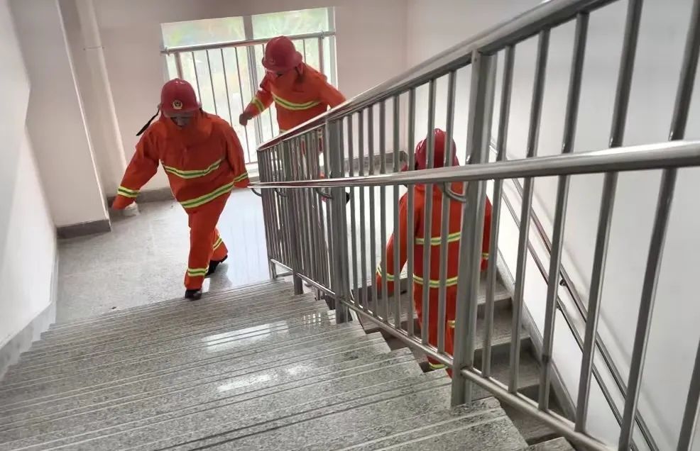 随后模拟在住院病区五层某病房为着火点,住院病人发现房间着火后立即大声呼救,值班护士发现立即启动消防灭火应急逃生疏散预案,按照预案分工,报警、扑救初期火灾、组织人员疏散逃生。消控室接到报警后,按照火灾应急处置程序联动相关设备,调集人员,至病区展开灭火救援,与此同时,病区医护人员迅速集合患者,引导帮助患者沿疏散通道有序撤离,行动不便的暂时安置在避难间。整个演练过程按照预定程序快速有序、配合流畅,顺利完成了整个病区人员的安全撤离和灭火任务。