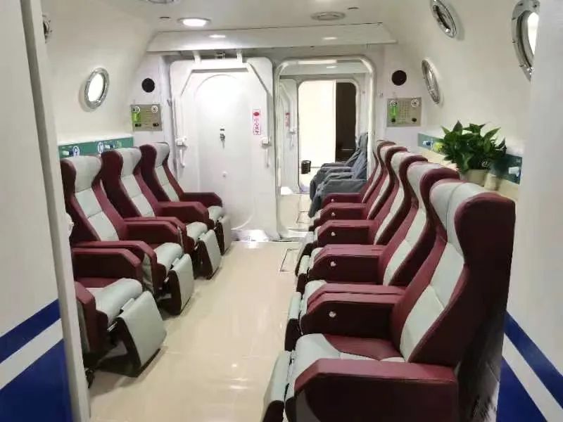 高压氧治疗室位于我院住院楼一楼东侧,配备了高压氧舱,该氧舱体量大、性能好,其治疗舱一次性能容纳10人,过渡舱容纳6人同时进行治疗,舱内环境整洁优雅,宽敞明亮,有舒适可调式座椅,中央送风冷暖式空调,多功能综合吸氧控制装置,治疗的同时可欣赏优美的音乐。每个舱室都设有呼吸机接口、负压吸引、急救供氧接口等先进抢救设备,增强了危重病抢救治疗能力。同时,高压氧舱外配备彩色电视摄像监视系统,先进的计算机自动化操舱与安全检测系统,医护人员可通过电脑控制、音频传输指导患者正确吸氧,让治疗过程更加高效安全。