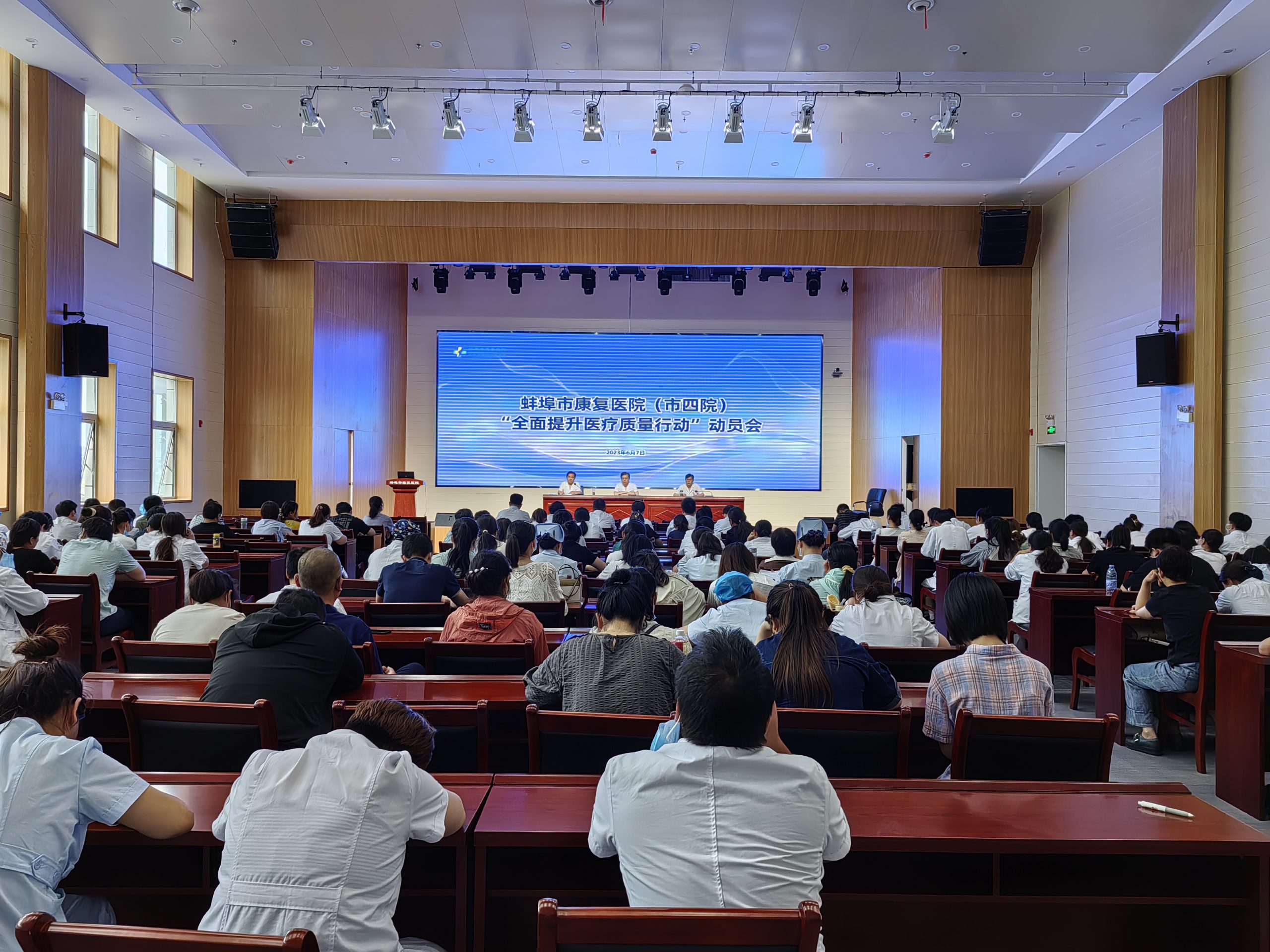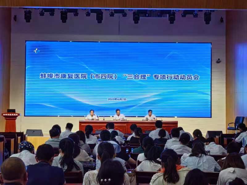 6月7日,蚌埠市康复医院(市四院)召开“合理检查、合理用药、合理治疗”(以下简称“三合理”)专项行动暨“全面提升医疗质量行动”部署会。院领导班子以及全院医务人员参加会议,会议由副院长李叶刚主持。